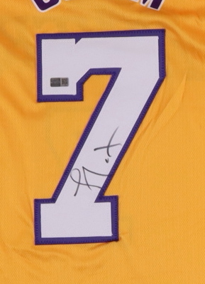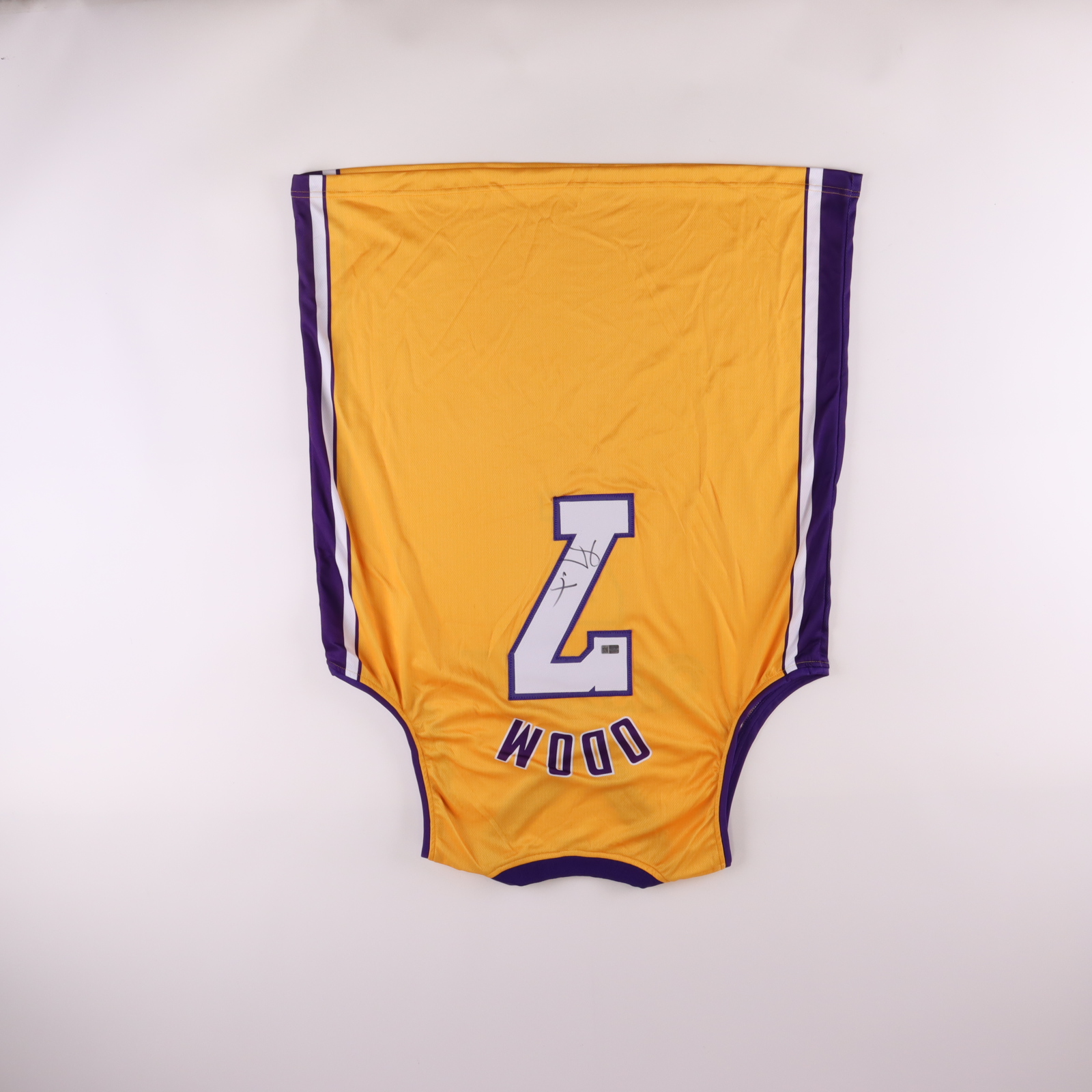Custom on-court style jersey. Everything is sewn on, size XL. Hand-signed by Lamar Odom.