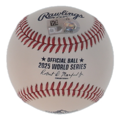 Rawlings Official Major League 2025 World Series Logo Baseball. Hand-signed and inscribed by Miguel Rojas (Los Angeles Dodgers).