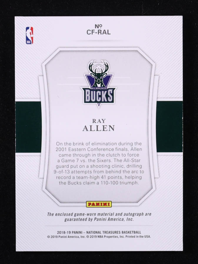 Ray Allen 2018-19 Panini National Treasures Clutch Factor Jersey Signatures #37 #40/49
