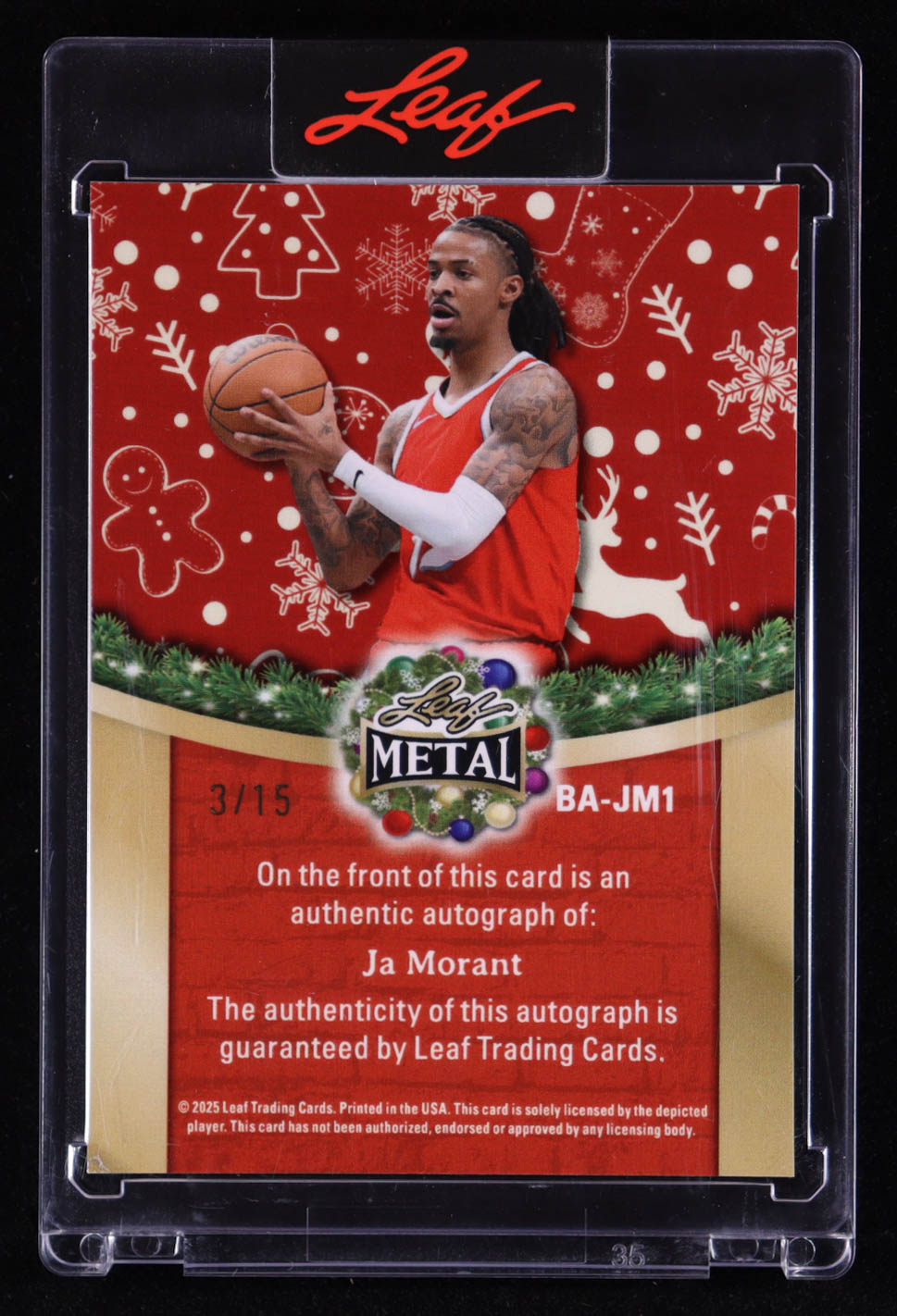 Ja Morant 2025 Leaf Metal Happy Hollidays Autographs Prismatic Candy Cane #BAJM1 #03/15
