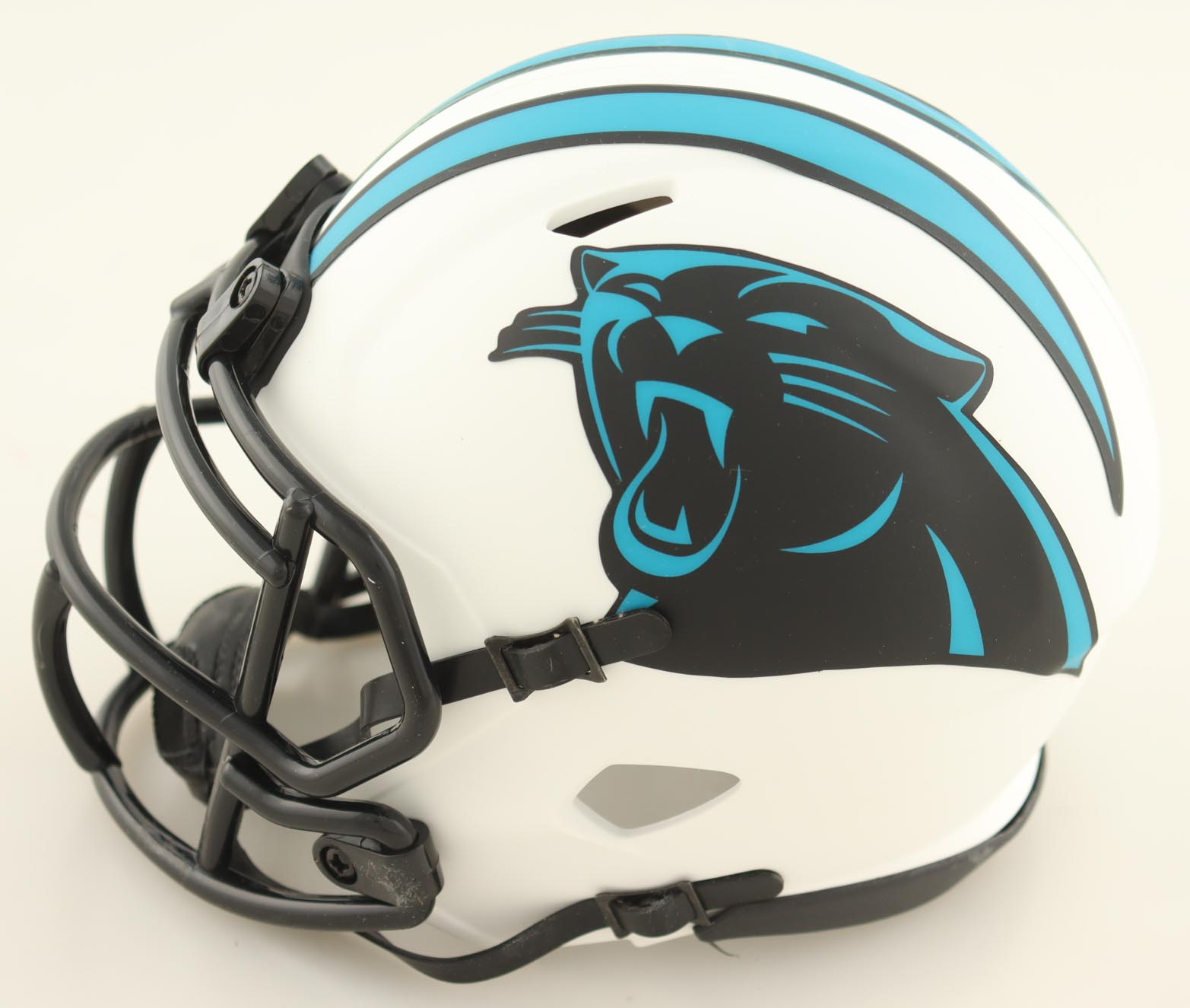 Riddell Carolina Panthers Lunar Eclipse Alternate Speed mini helmet has been hand-signed by Brian Burns.