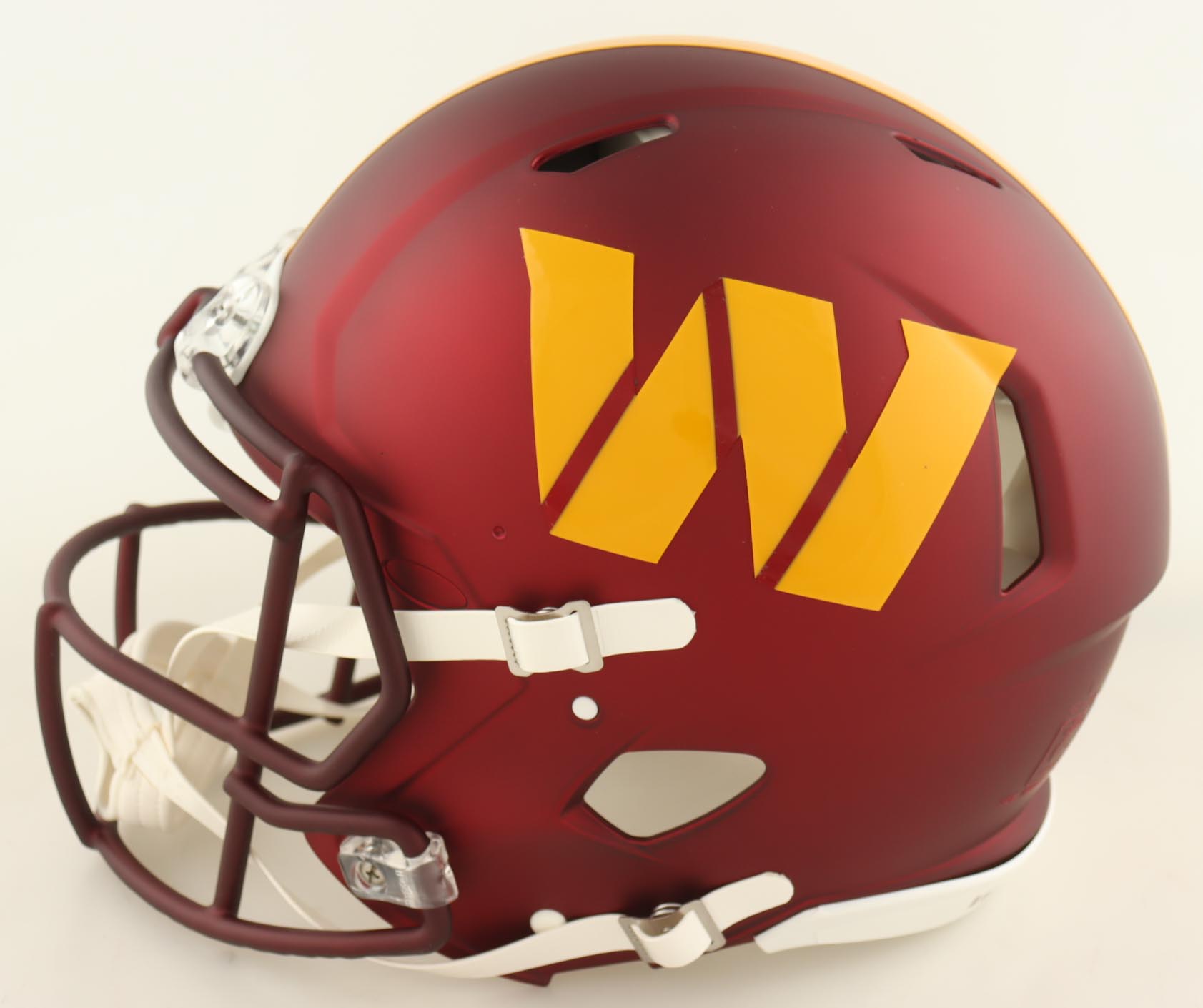 Riddell Washington Commanders full-size authentic on-field speed helmet has been hand-signed and inscribed by Brian Robinson Jr.