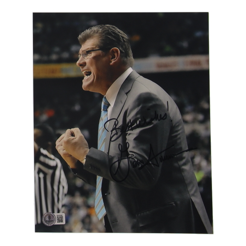 Photo measures approximately 8" x 10" in size and has been hand-signed and inscribed by Geno Auriemma (HOF).
