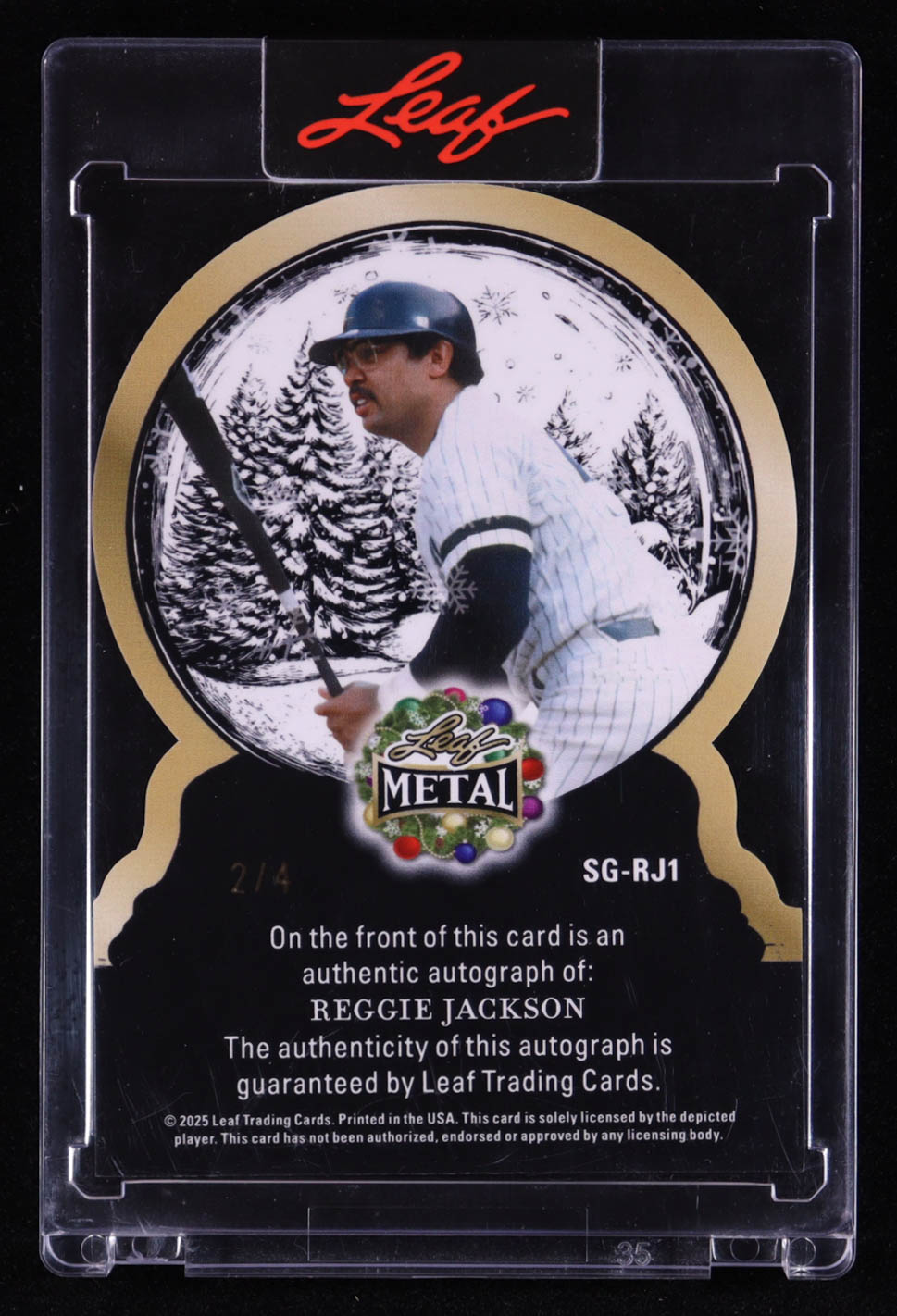 Reggie Jackson 2025 Leaf Metal Happy Hollidays Autographs Green Snowglobe Die Cut #SGRJ1 #2/4