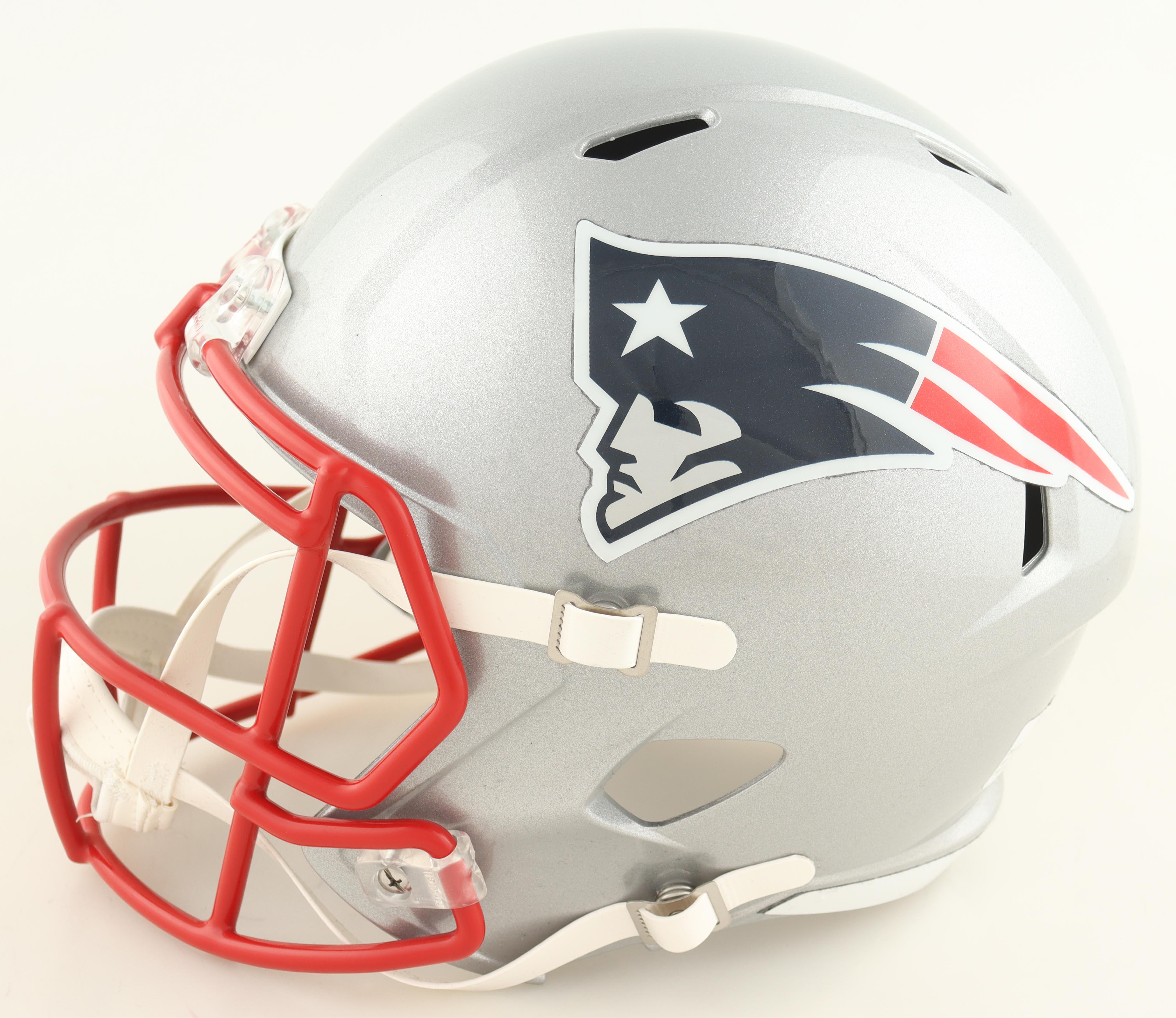 Riddell New England Patriots full-size speed replica helmet has been hand-signed by superstar, Drake Maye!