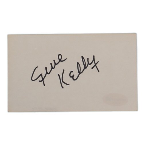 Cut measures approximately 3" x 5" in size and has been hand-signed by Gene Kelly (D. 1996).