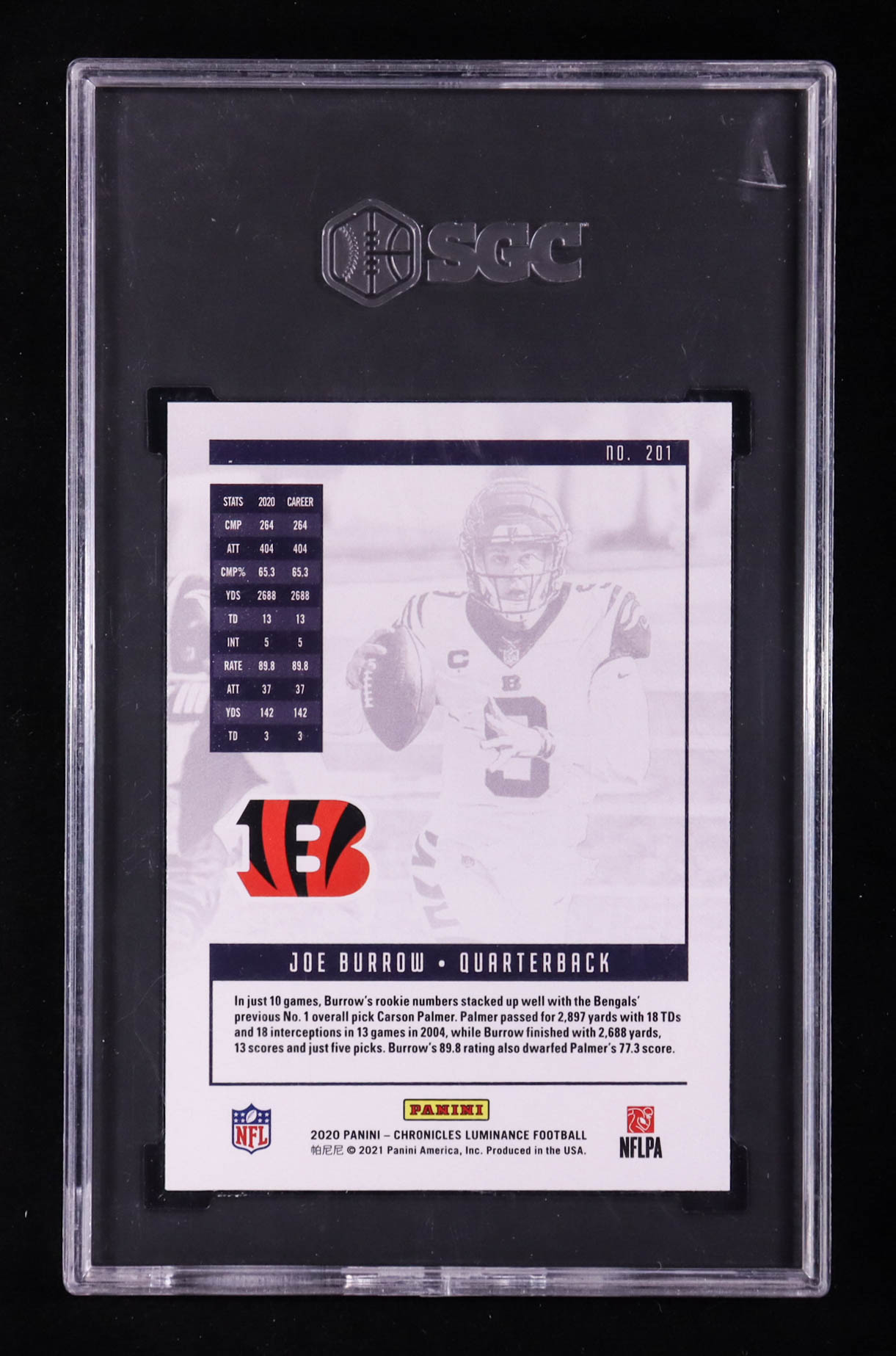 Joe Burrow 2020 Panini Luminance #201 Chronicles RC (SGC 9)