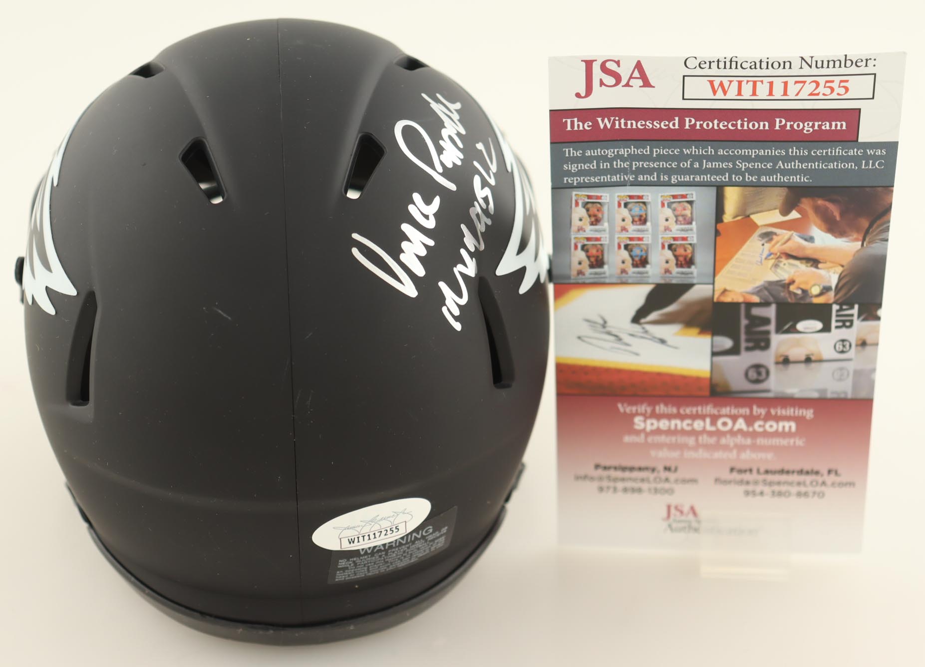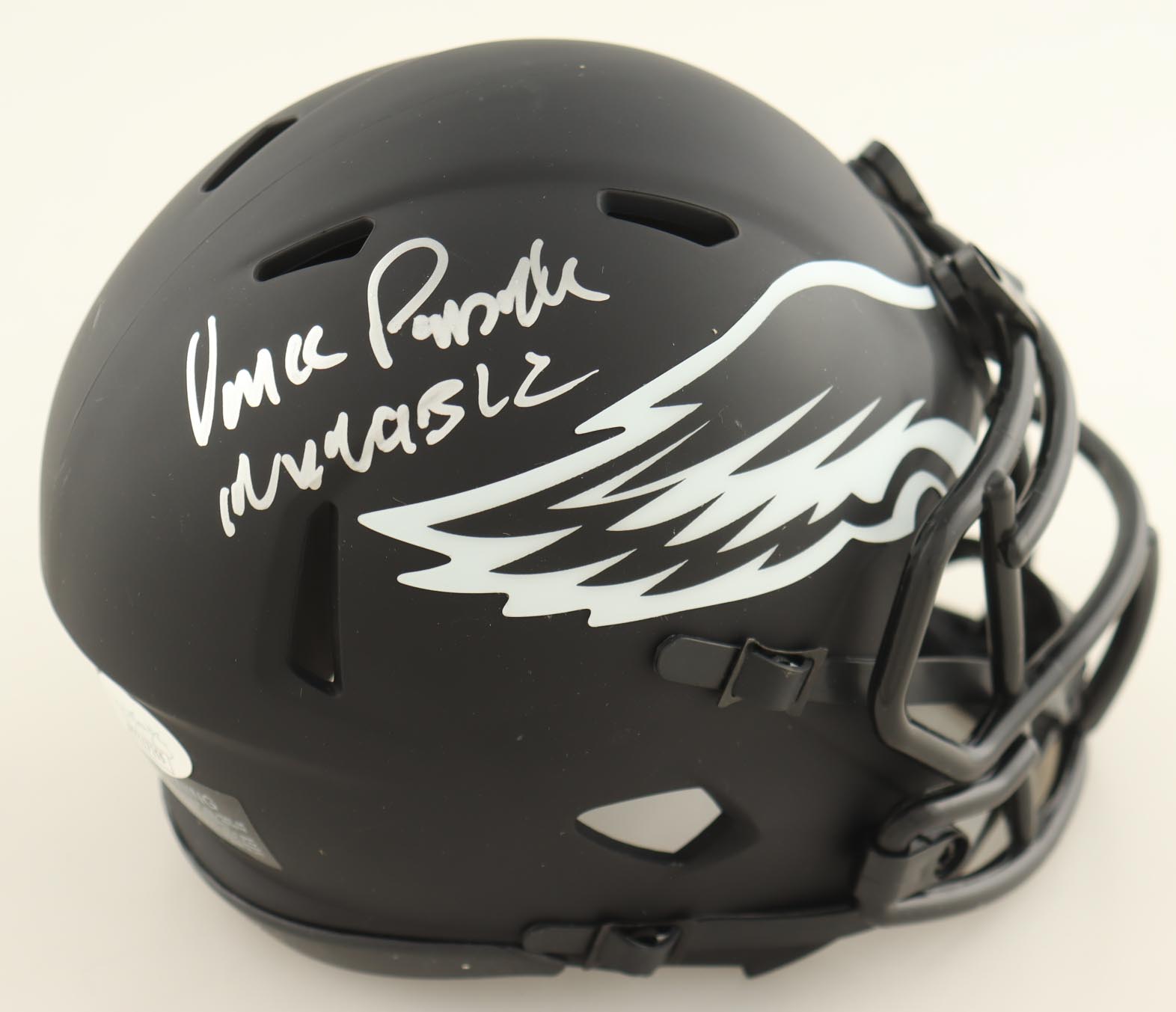 Riddell Philadelphia Eagles eclipse alternate speed mini helmet has been hand-signed and inscribed by Vince Papale.