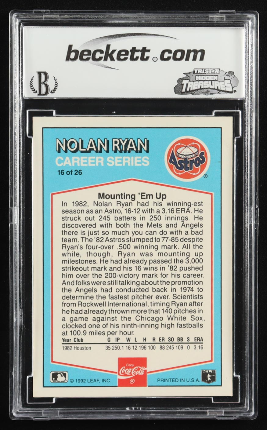 Nolan Ryan 1992 Donruss Coke 1982 HA #16 (BCCG 10)