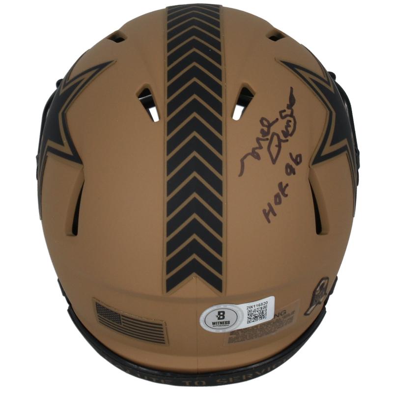 Riddell Dallas Cowboys salute to service alternate speed mini helmet has been hand-signed and inscribed by Mel Renfro (HOF).