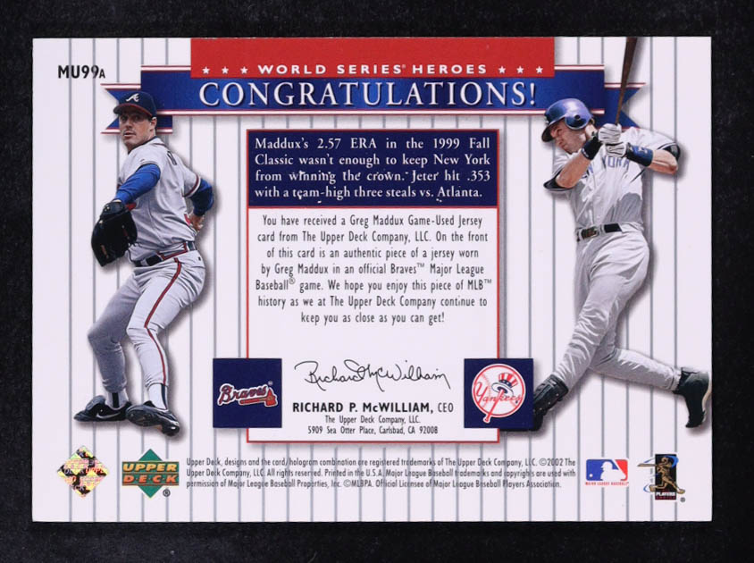 Greg Maddux / Derek Jeter 2002 Upper Deck World Series Heroes Classic Match-Ups Memorabilia JSY #MU99a