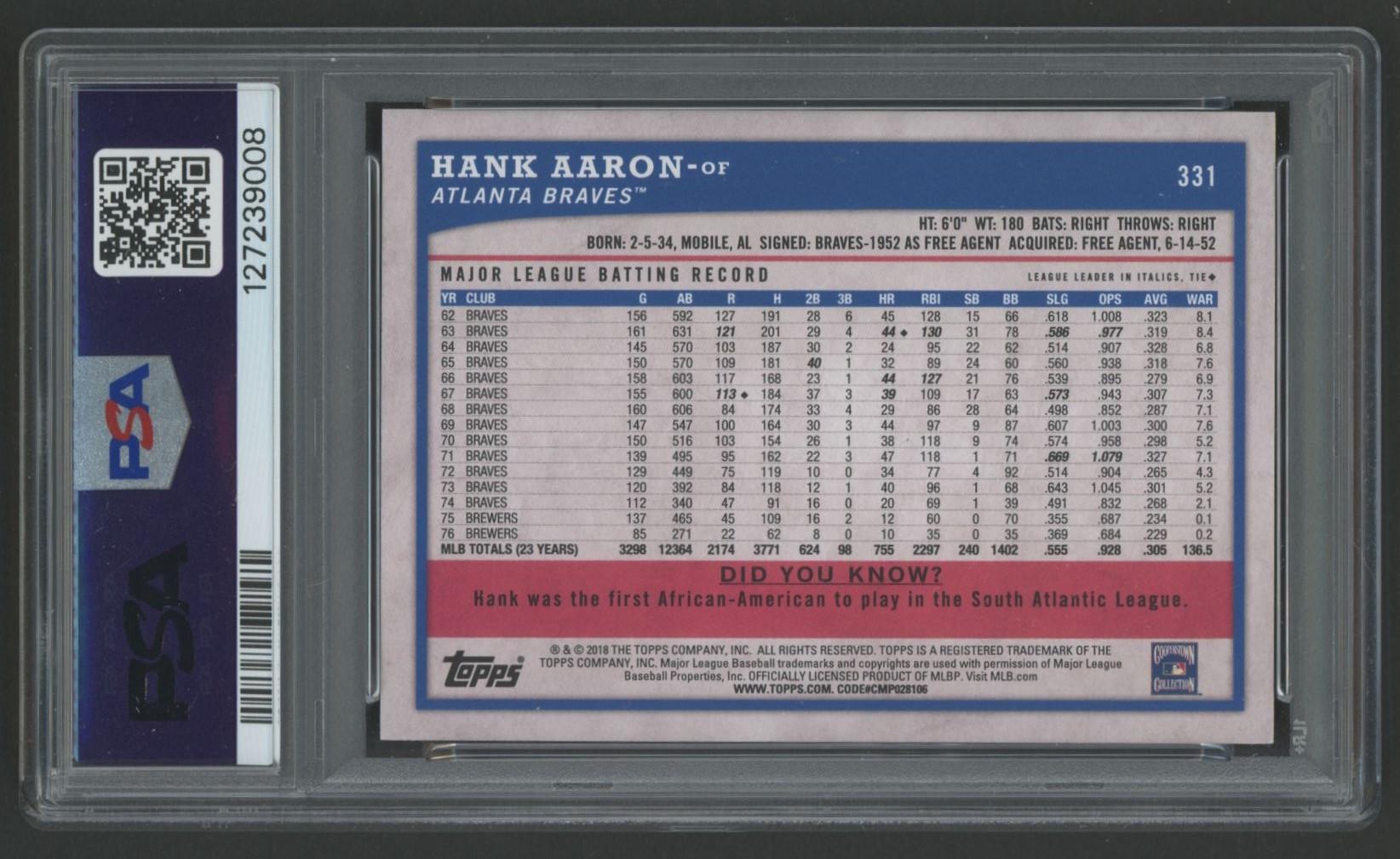 Hank Aaron 2018 Topps Big League #331 (PSA 10)