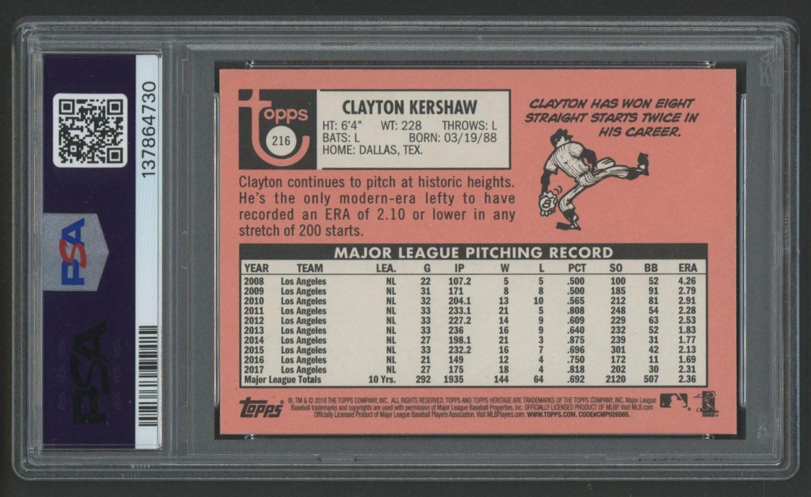 Clayton Kershaw 2018 Topps Heritage #216 (PSA 10)