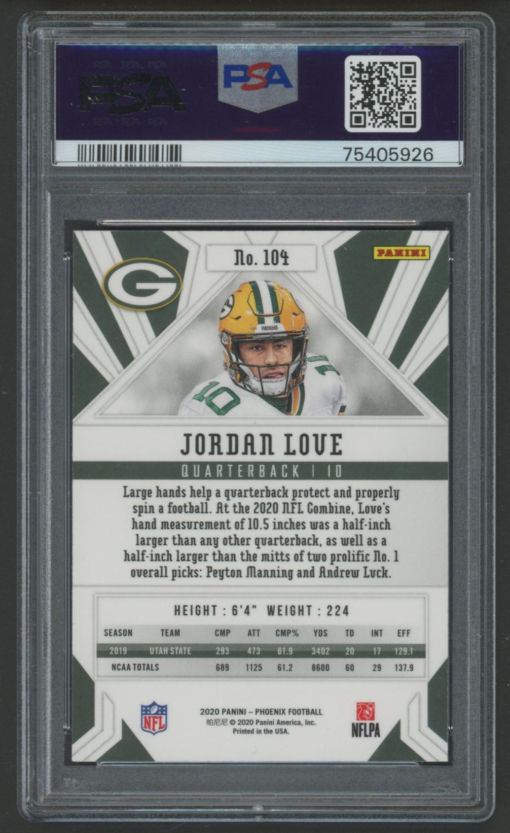 Jordan Love 2020 Panini Phoenix Fire Burst #104 RC (PSA 10)