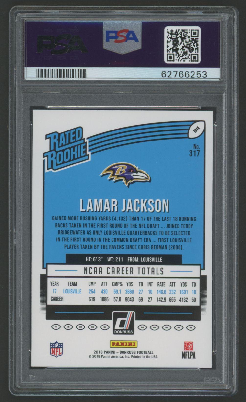 Lamar Jackson 2018 Donruss RR #317 RC (PSA 9)