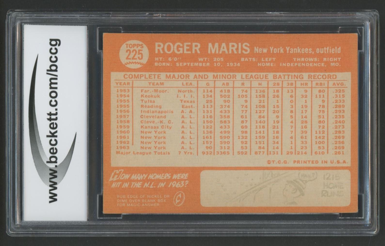 Roger Maris 1964 Topps #225 (BCCG 8)