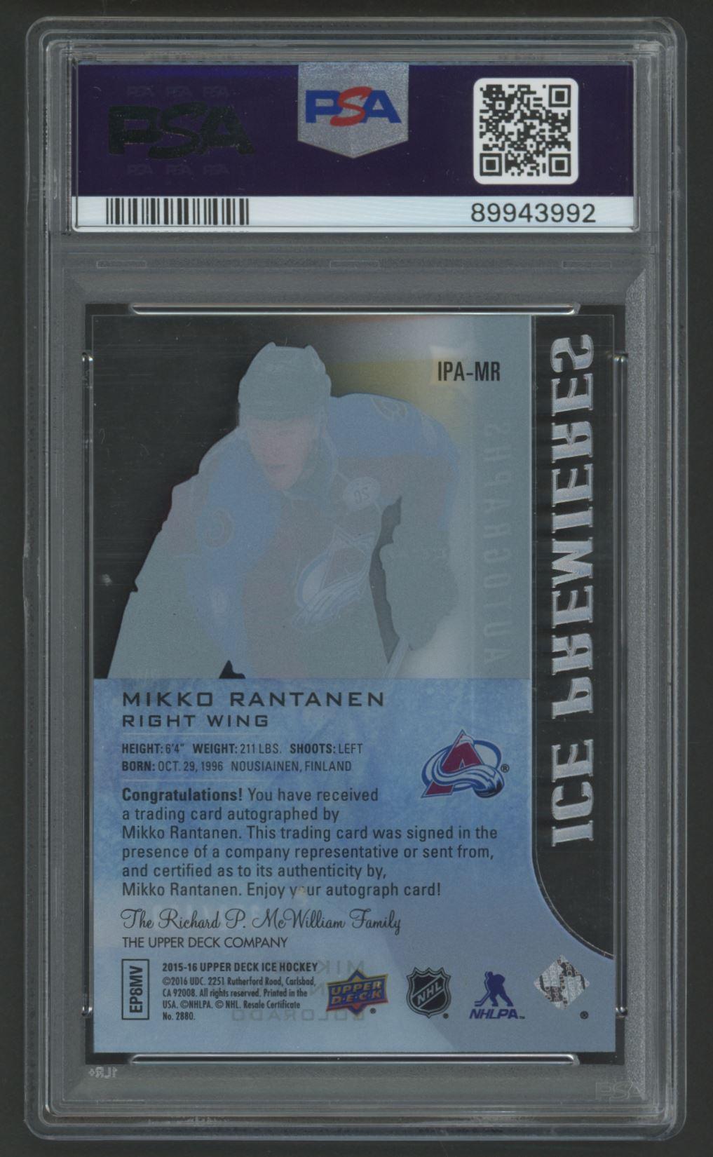 Mikko Rantanen Signed 2015 Upper Deck Ice Premieres #IPAMR #352/499 (PSA 8)