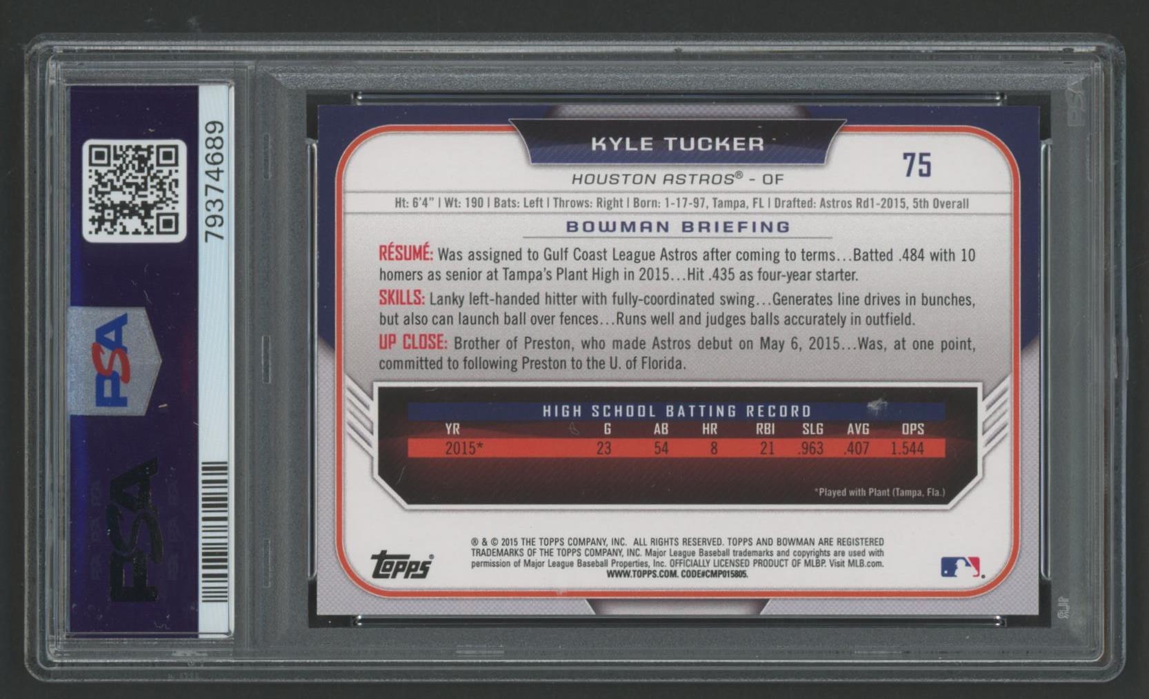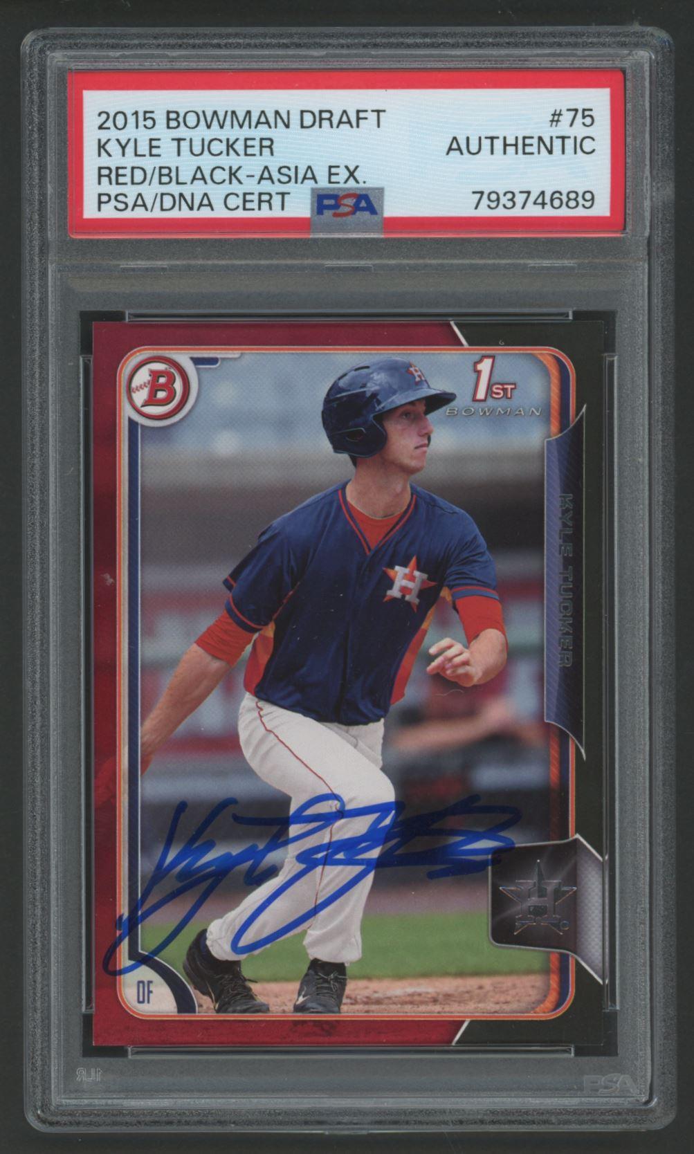 Kyle Tucker Signed 2015 Bowman Draft #75 Red/Black Asia (PSA)