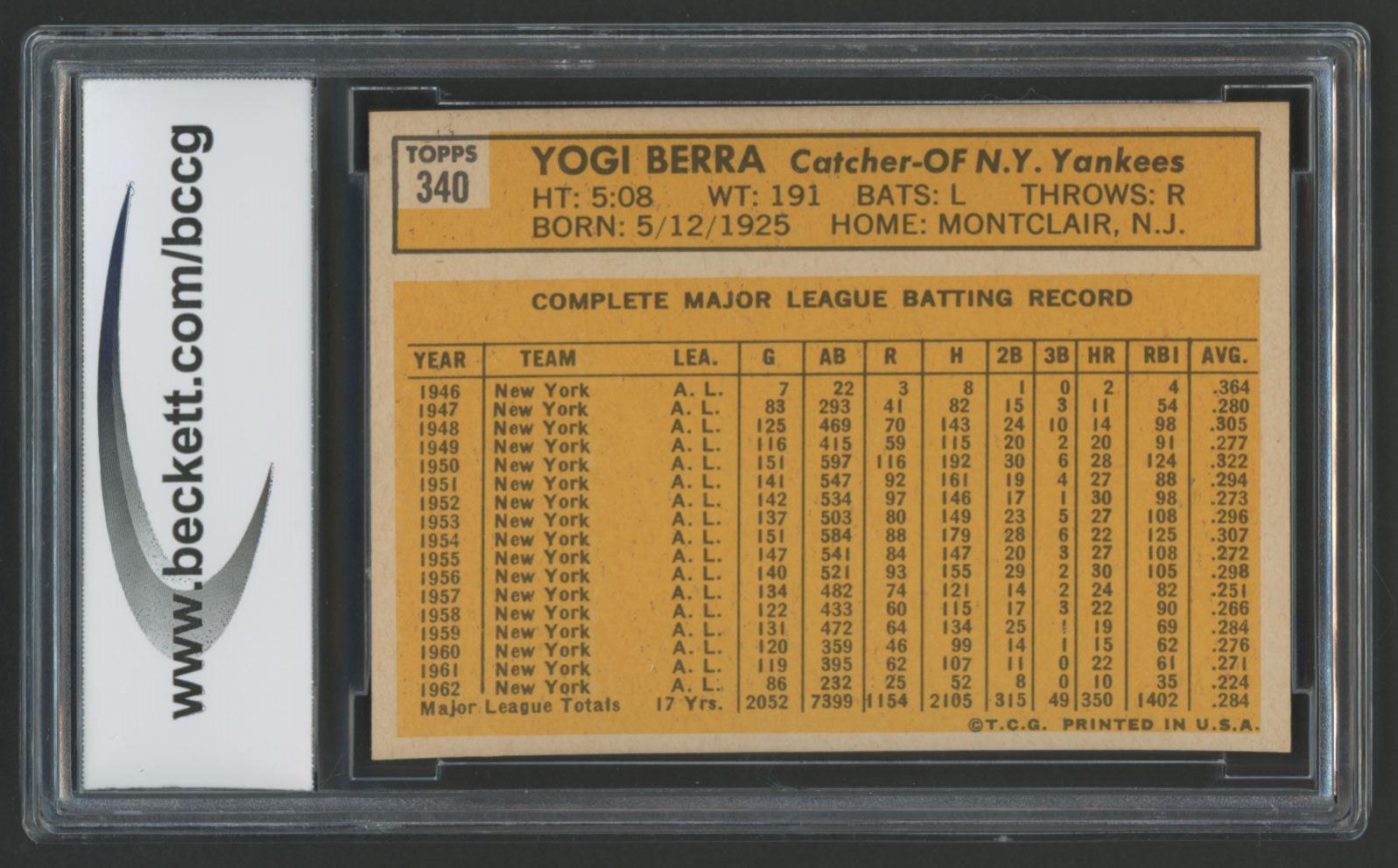 Yogi Berra 1963 Topps #340 (BCCG 8)