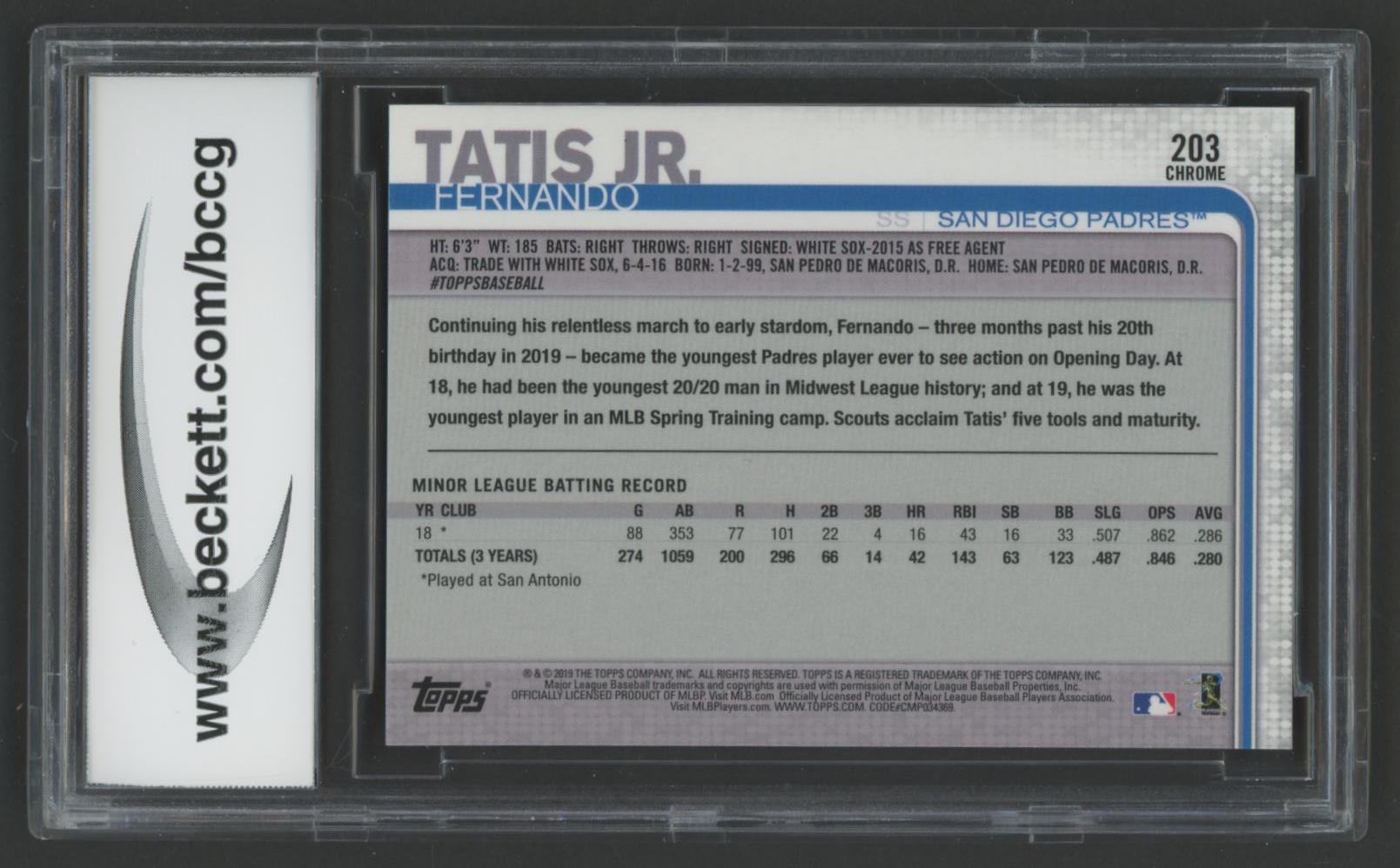 Fernando Tatis Jr. 2019 Topps Chrome Prism Refractors #203 (BCCG 10)