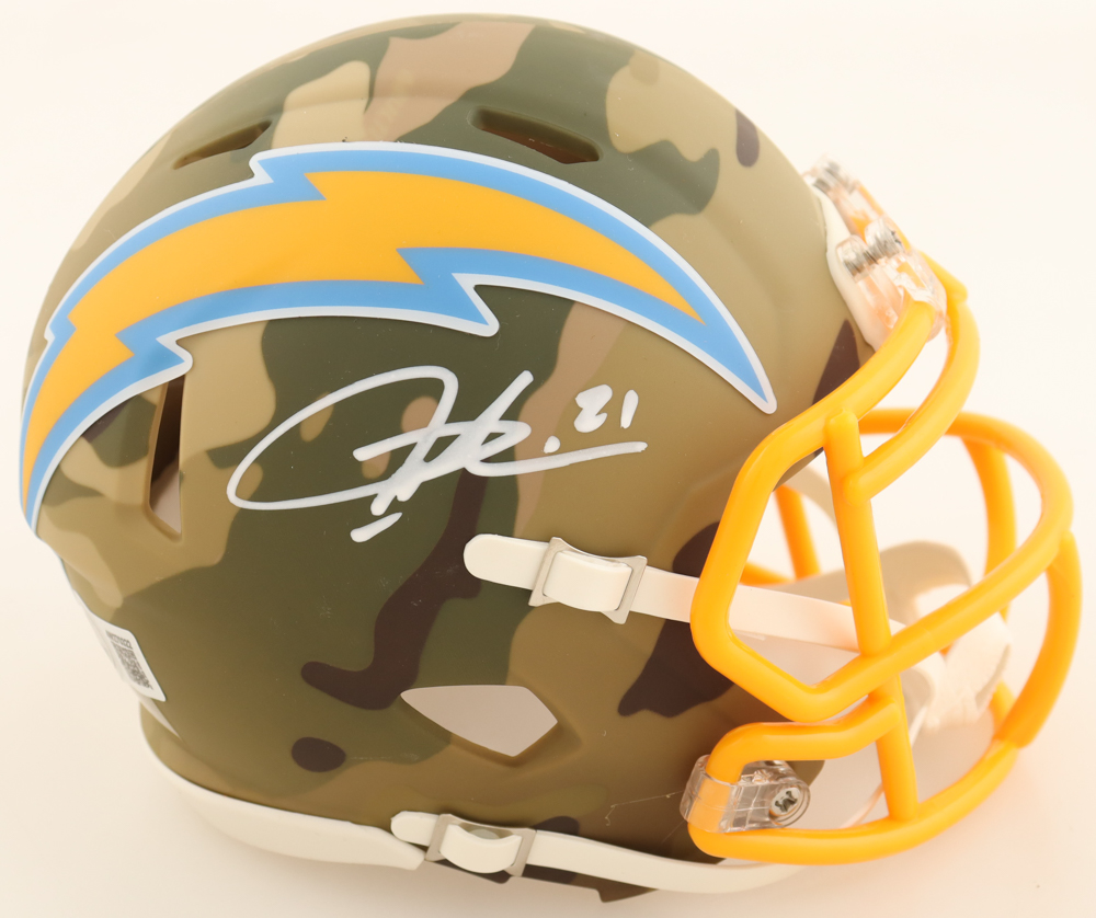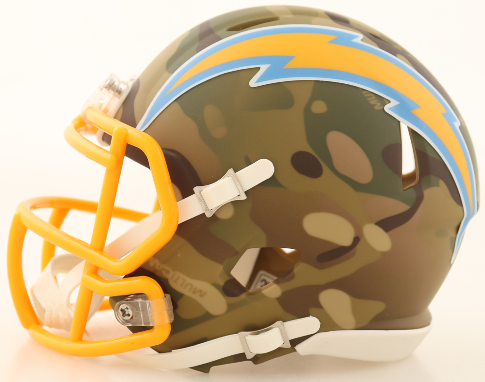 Riddell San Diego Chargers Camo Alternate Speed mini helmet. Hand-signed by LaDainian Tomlinson (HOF).