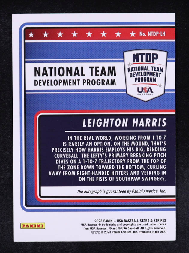 Leighton Harris 2023 USA Baseball Stars and Stripes National Team Development Program Signatures Blue #35 RC