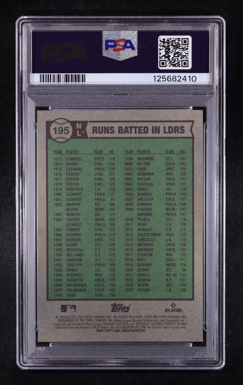 Shohei Ohtani / Willy Adams / Manny Machado 2025 Topps Heritage Runs Batted In LDRS Chrome Green Refractor #195 #41/99 (PSA 10)