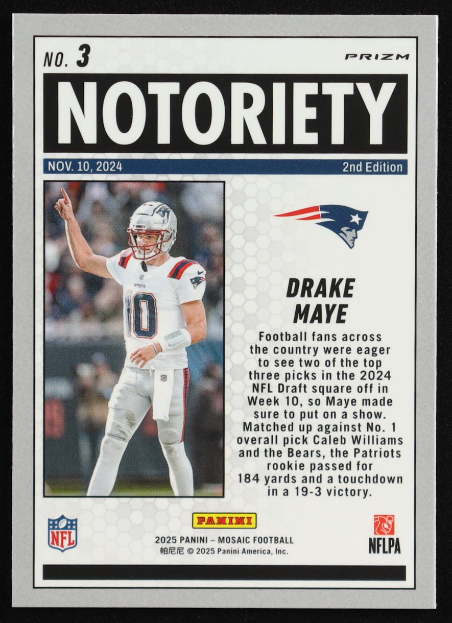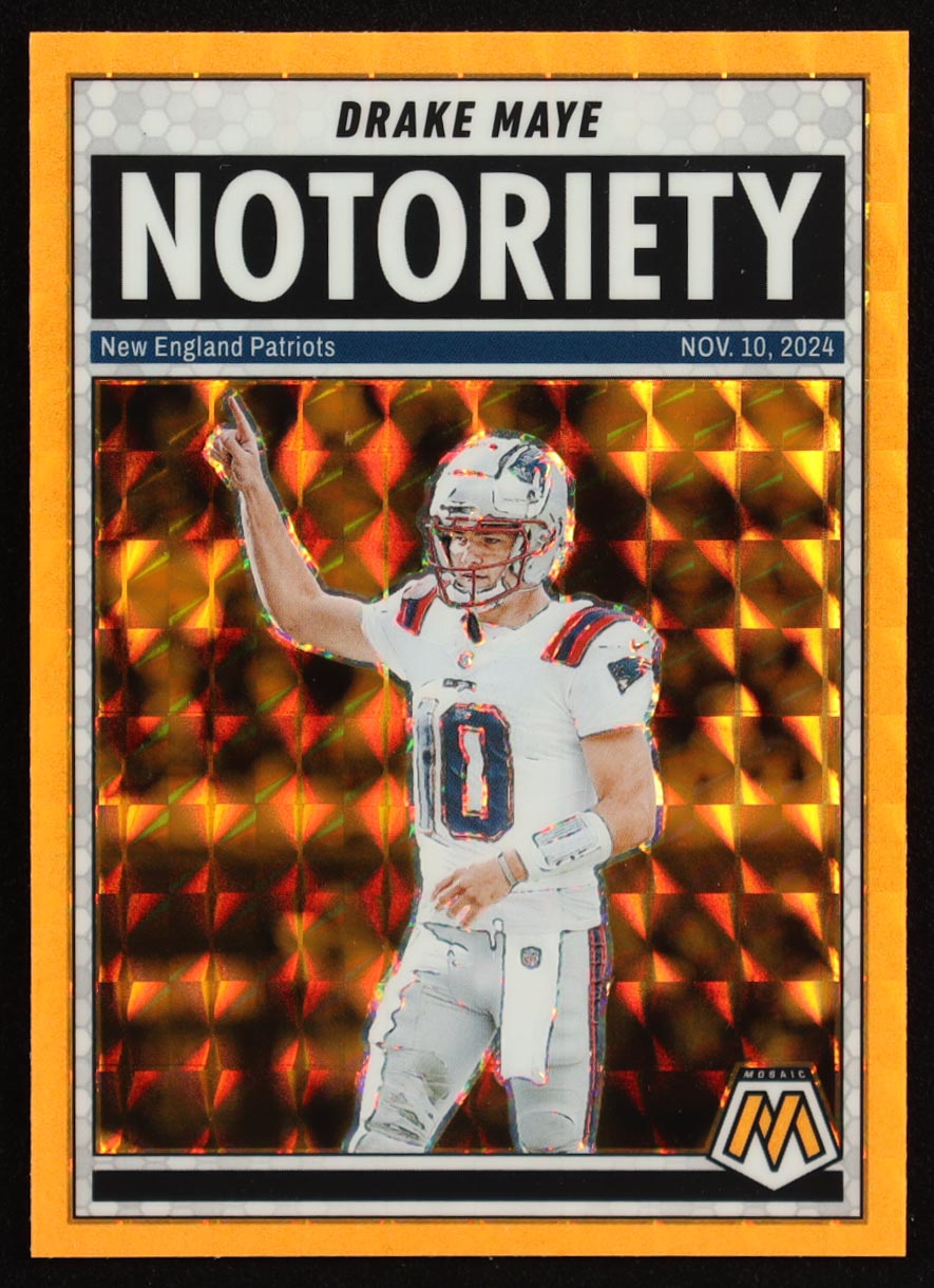 Drake Maye 2025 Panini Mosaic Notoriety Mosaic Orange Fluorescent #3