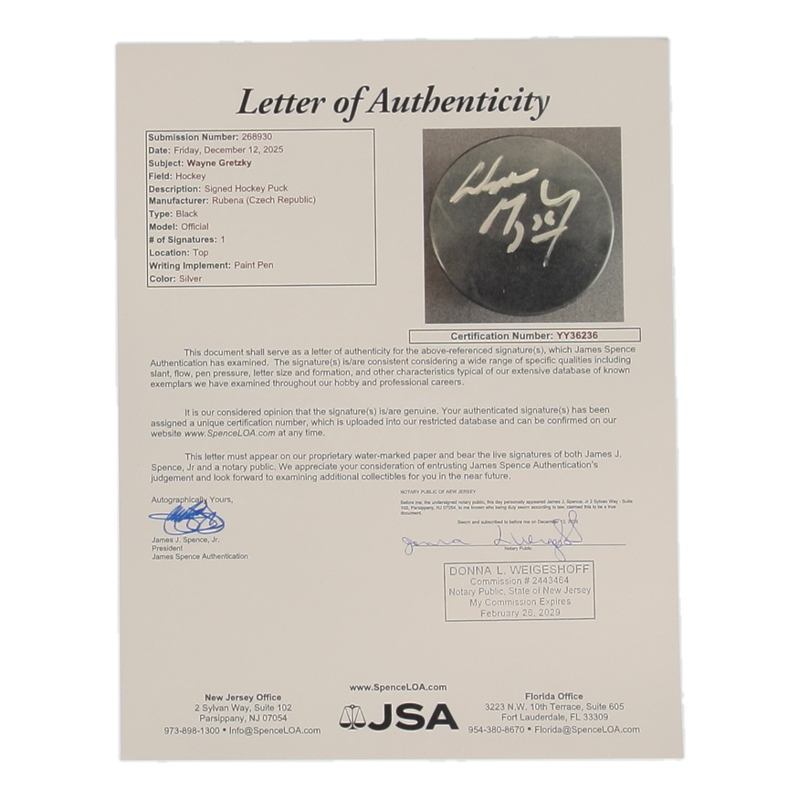 Wayne Gretzky Signed Hockey Puck (JSA)