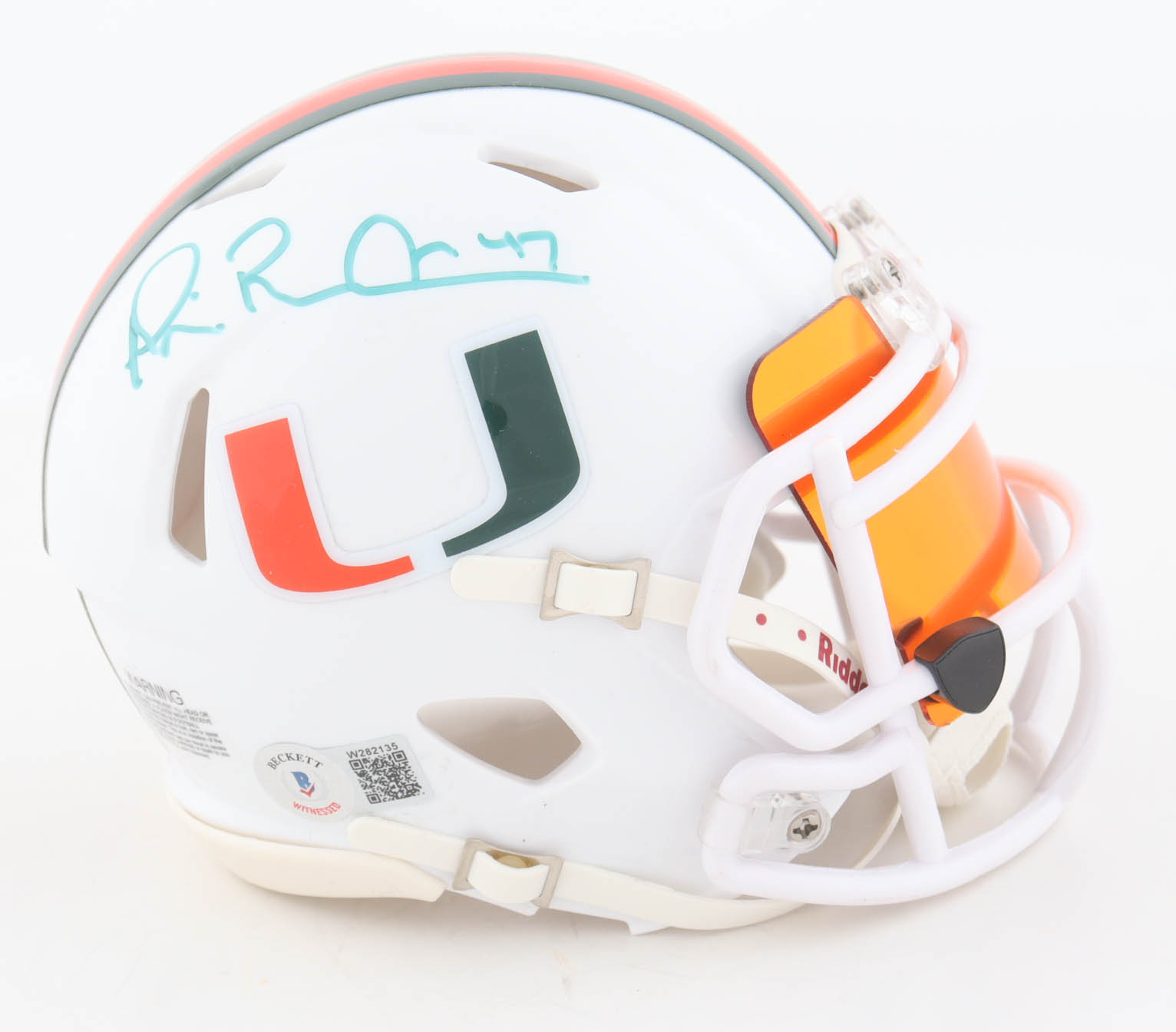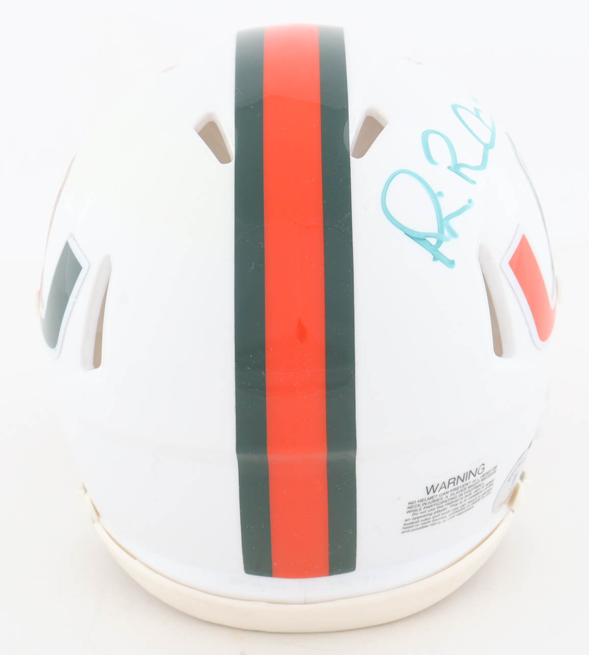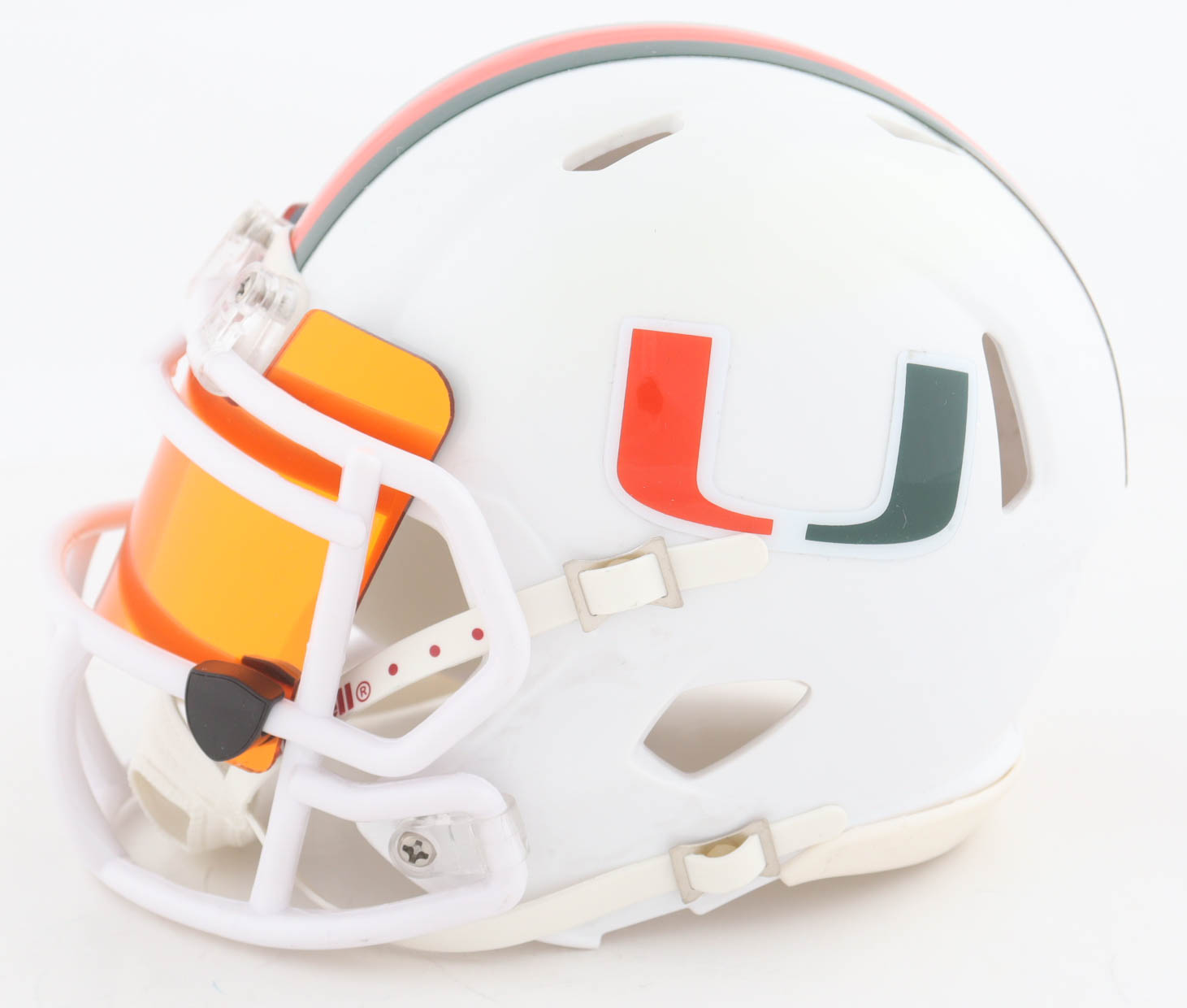 Riddell Miami Hurricanes Speed mini helmet with visor. Hand-signed by Michael Irvin.
