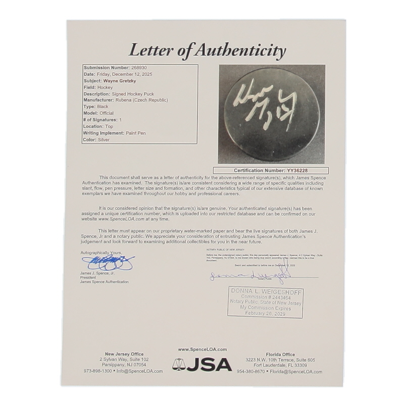 Wayne Gretzky Signed Hockey Puck (JSA)