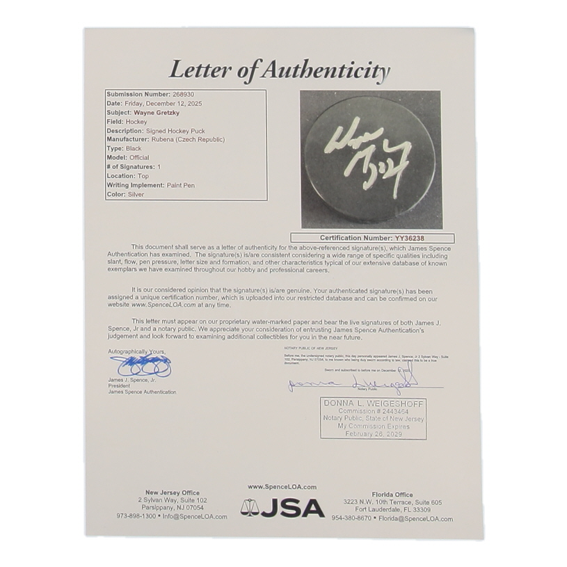 Wayne Gretzky Signed Hockey Puck (JSA)
