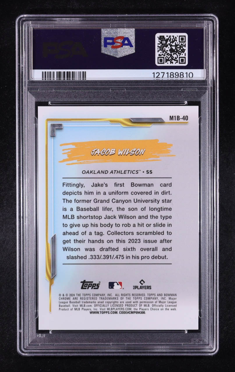 Jacob Wilson 2024 Bowman Chrome M/B My 1st Bowman Blue Refractor #M1B-40 RC #018/150 (PSA 10)
