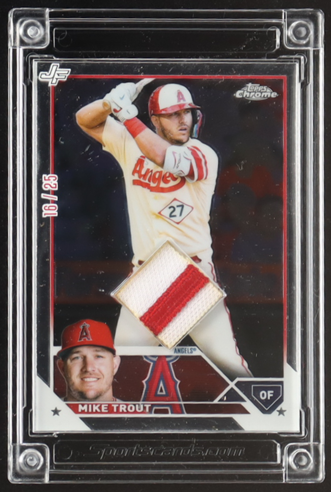 Mike Trout 2025 Topps Chrome Jersey Fusion Player-Worn Swatch #MT13P #16/25