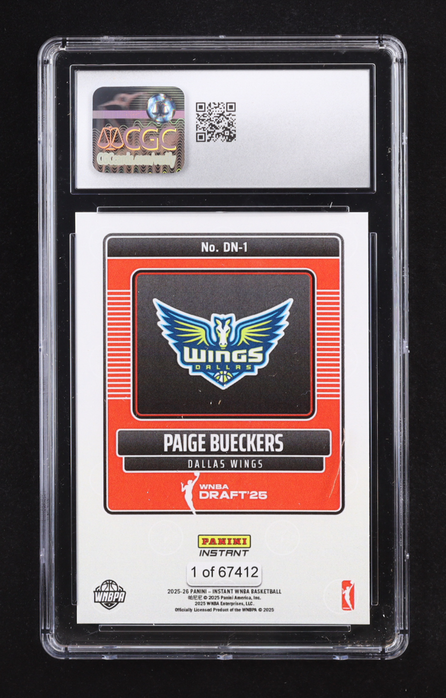 Paige Bueckers 2025-26 Panini Instant WNBA Draft Night #DN-1 RC (CGC 9.5)