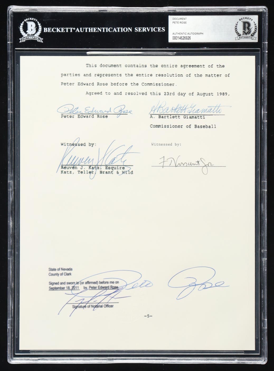 Pete Rose Signed "Banned from Baseball" Document (BAS)