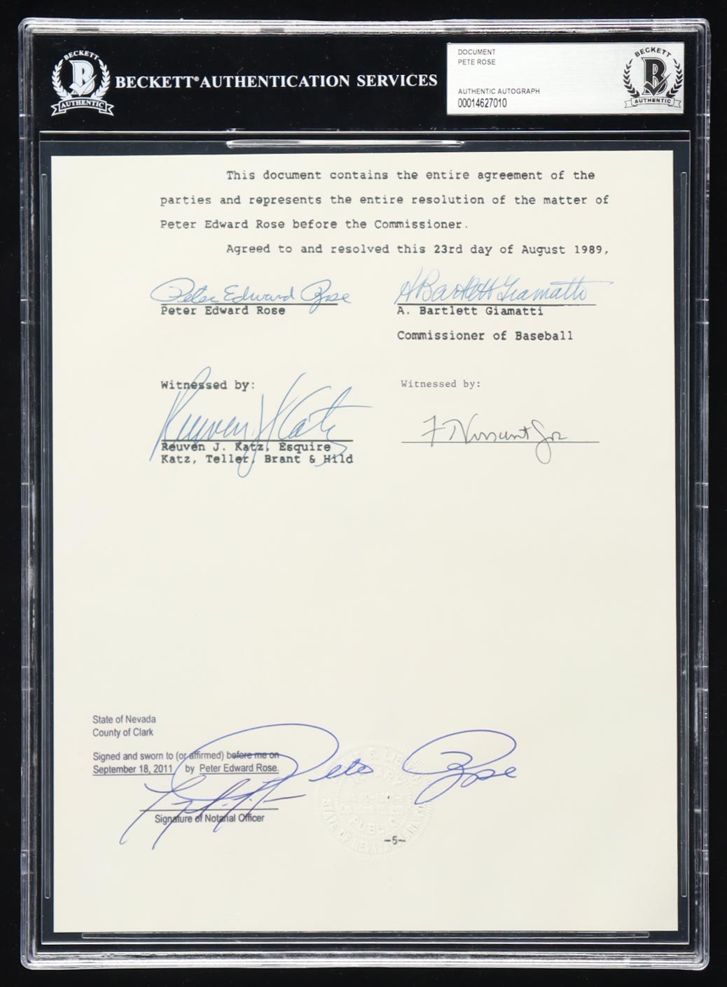 Pete Rose Signed "Banned from Baseball" Document (BAS)