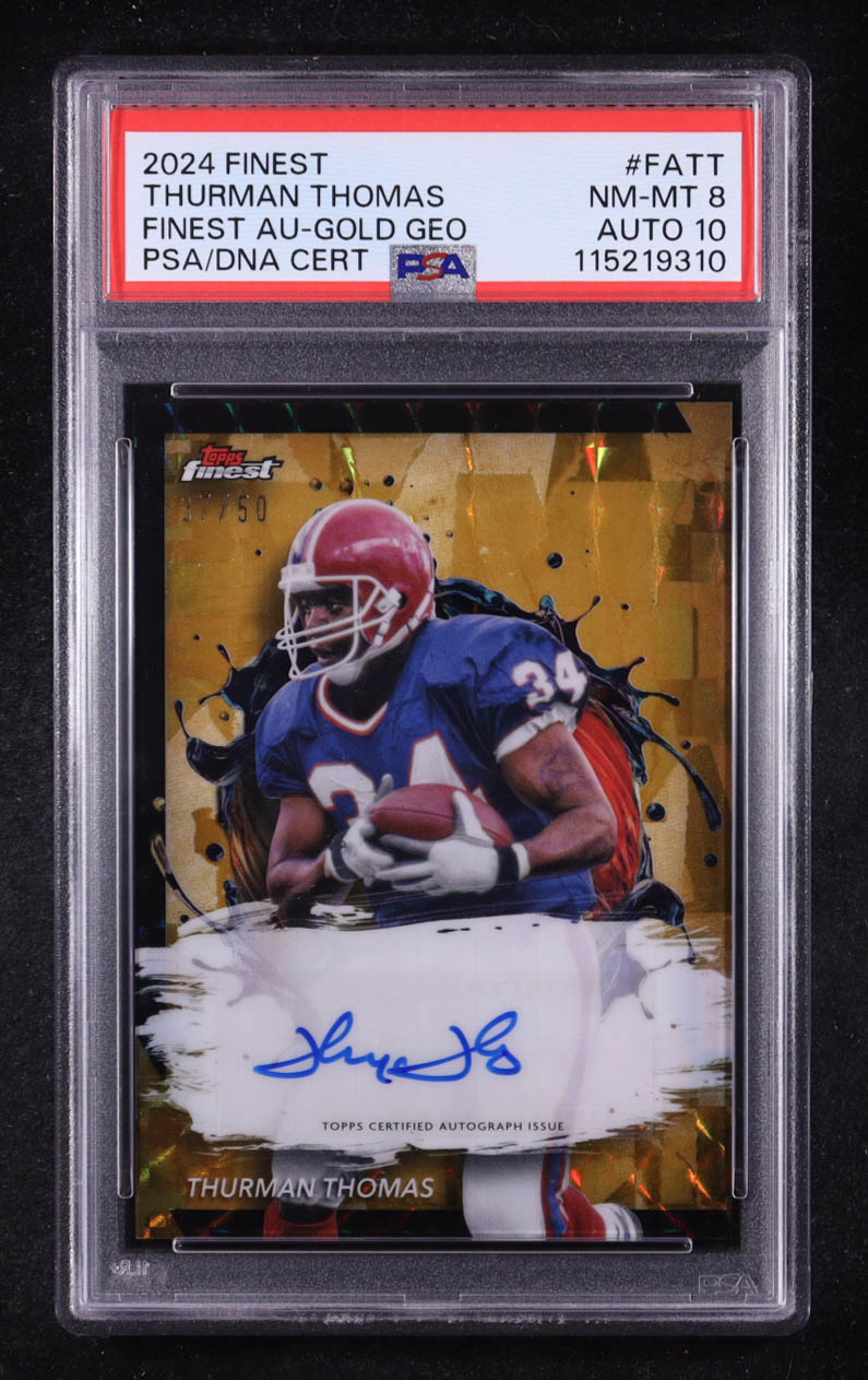 Thurman Thomas 2024 Finest Autographs Gold Geometric Refractors #FATT #37/50 (PSA 8 | Autograph Graded 10)