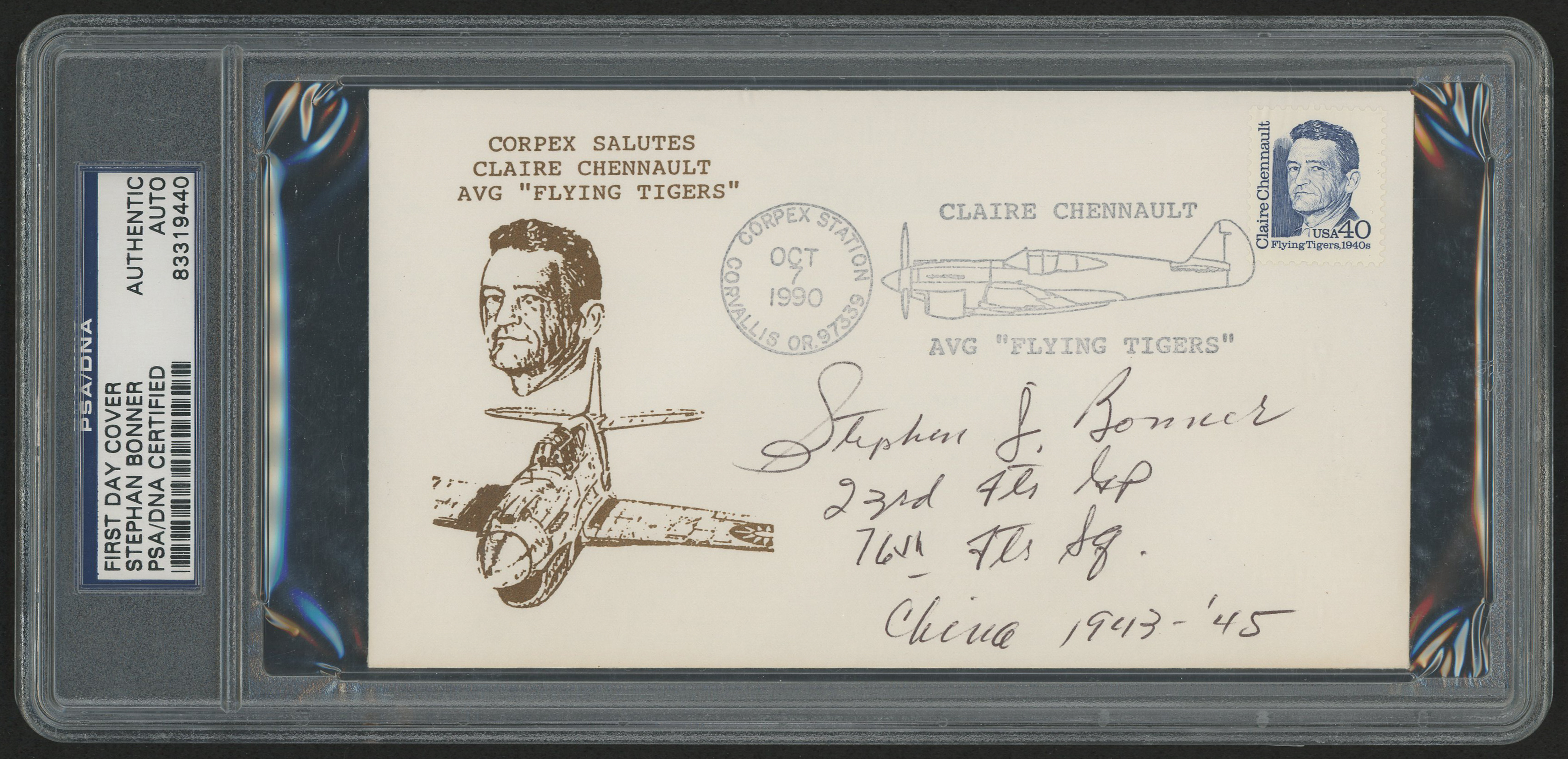 Stephan Bonner Signed "The Flying Tigers" 1990 FDC Envelope (PSA Authentic)