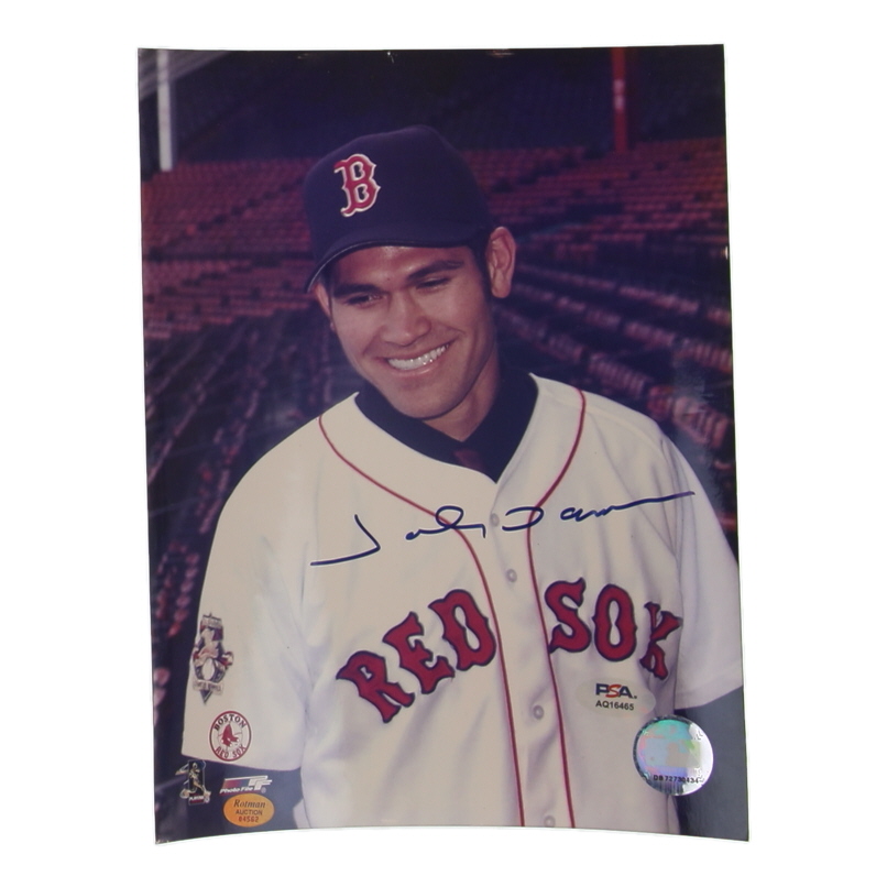 Photo measures 8" x 10" in size and has been hand-signed by Johnny Damon (Boston Red Sox).