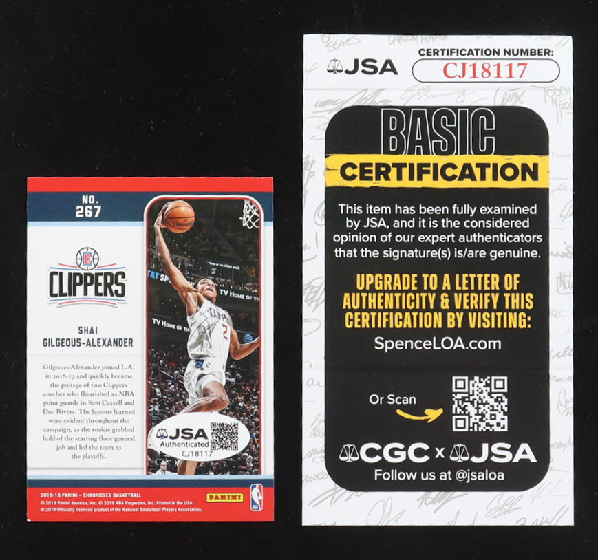 Card has been hand-signed by Shai Gilgeous-Alexander Please see photos for more details regarding the condition of the card (Los Angeles Clippers).