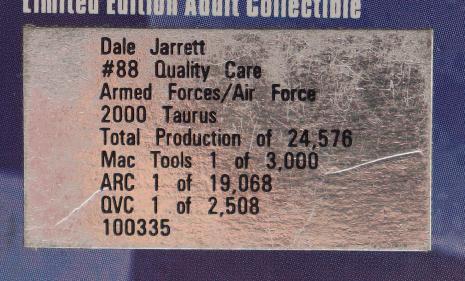 Dale Jarrett NASCAR #88 Quality Care Armed Forces / Air Force 2000 Taurus. Please see photos for more details.
