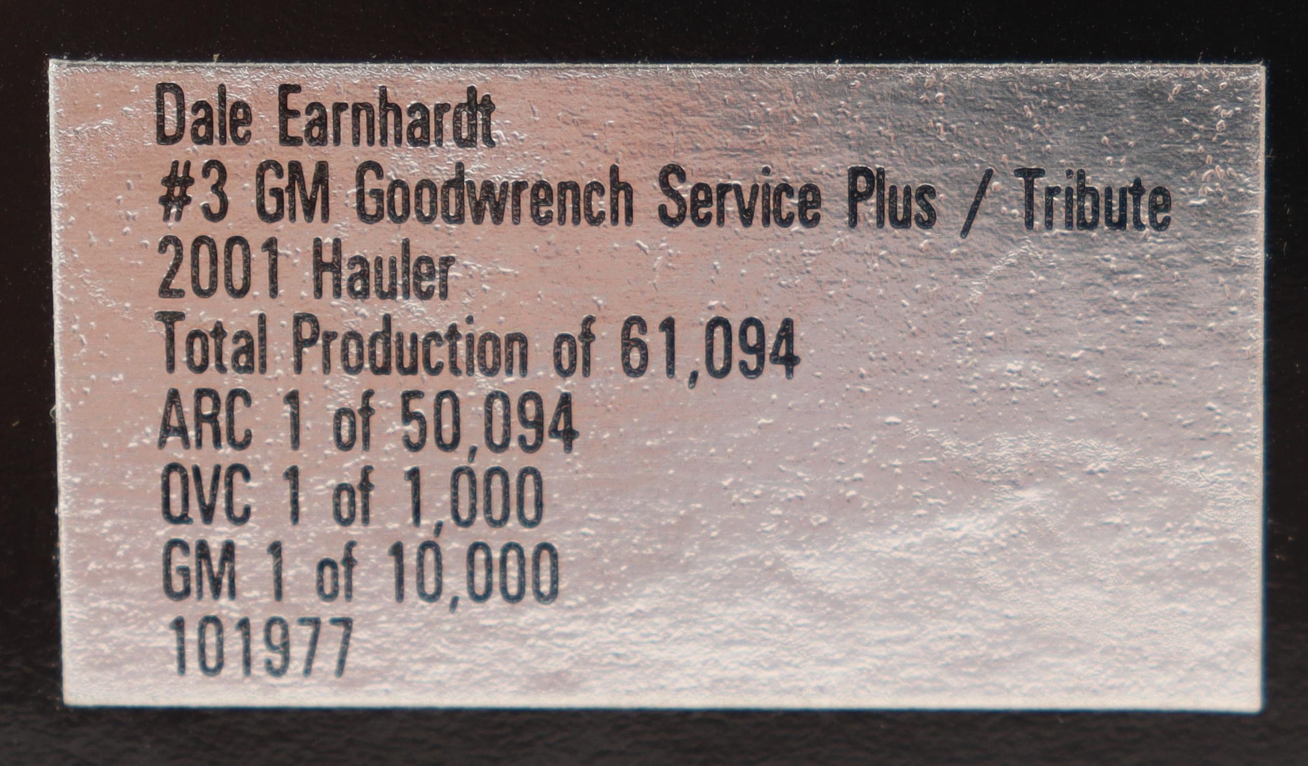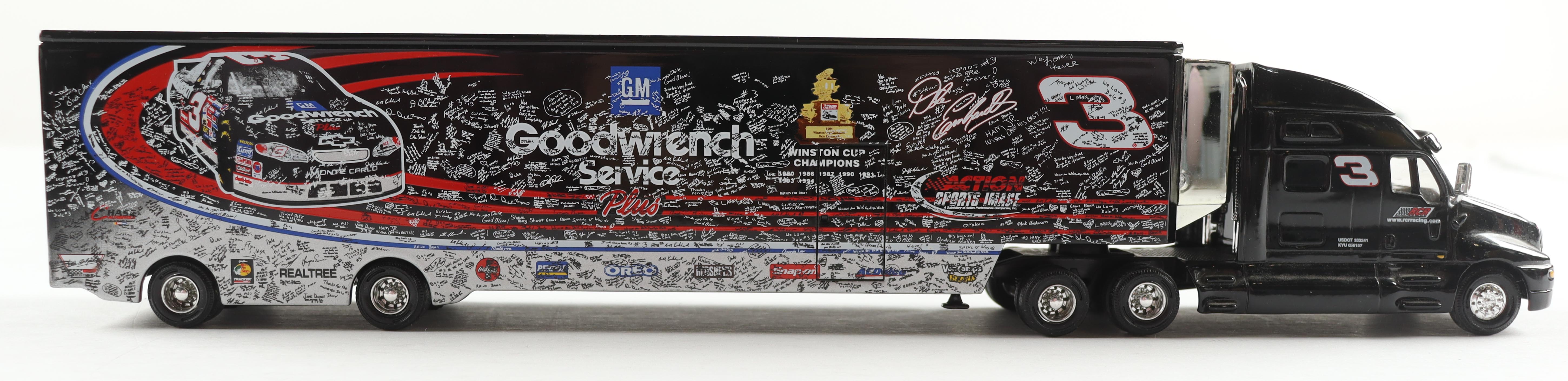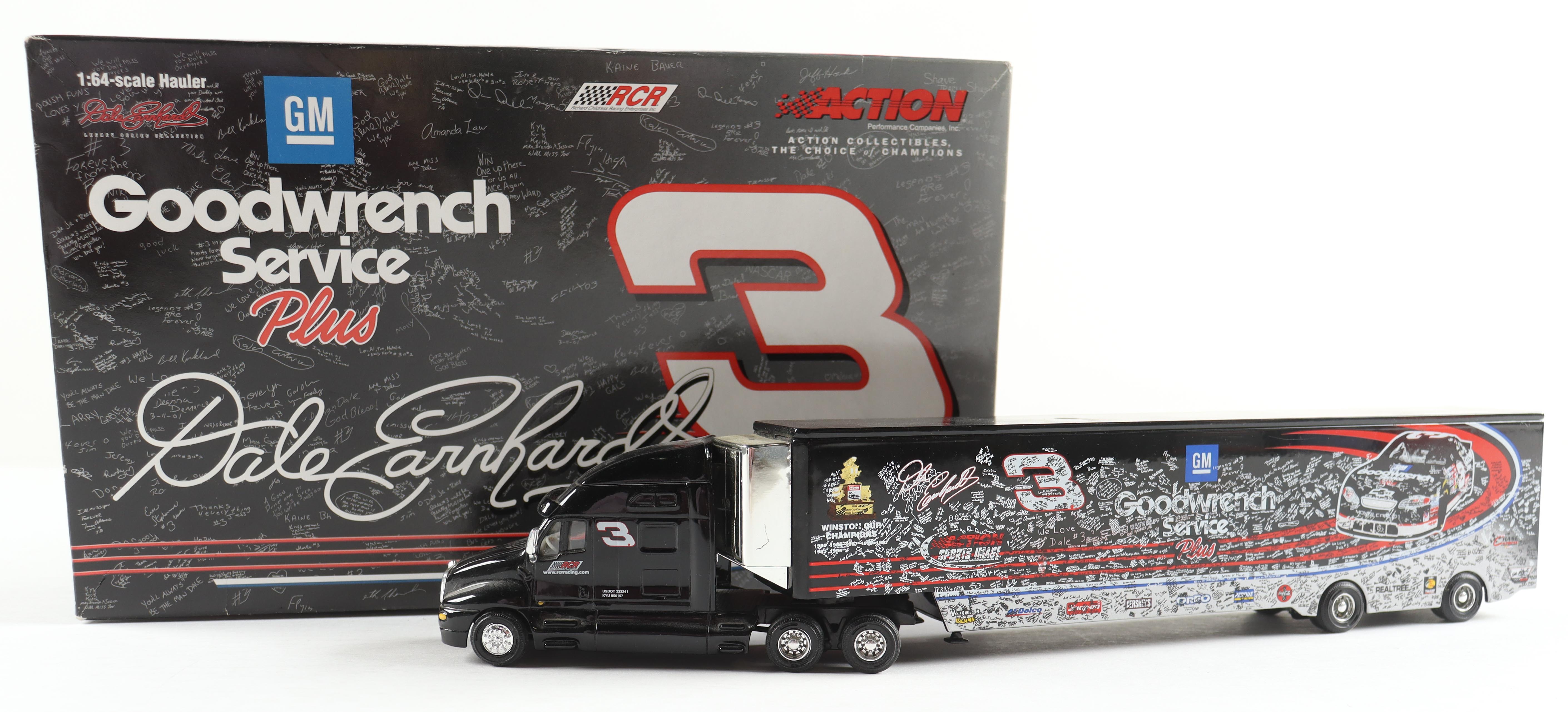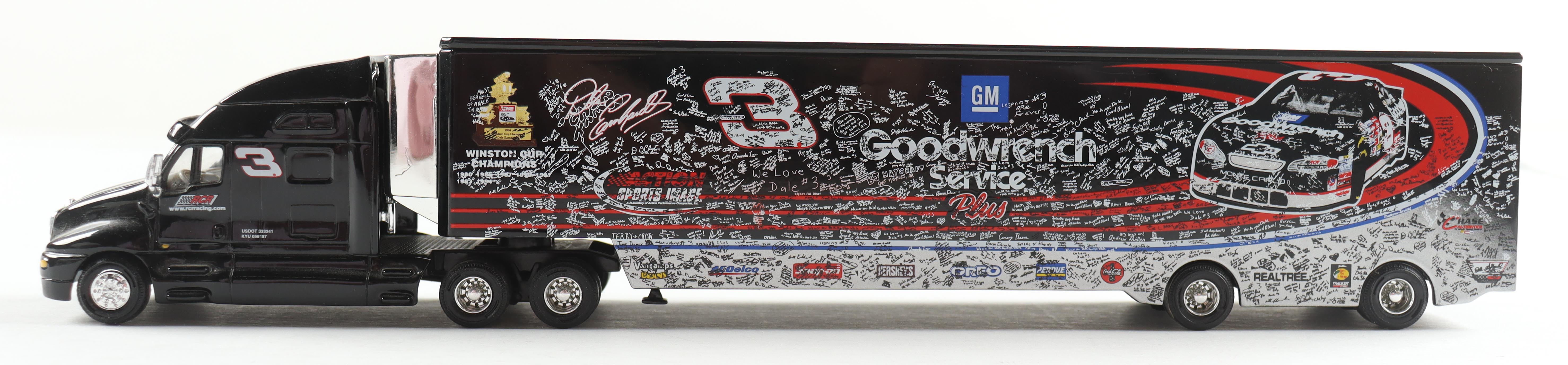 Action Racing 2001 Tribute / Goodwrench Racing Team Hauler 1:64 Scale Die-Cast Transporter features Dale Earnhardt Sr. (D. 2001, HOF). Includes original packaging. Please note that the item is unsigned.