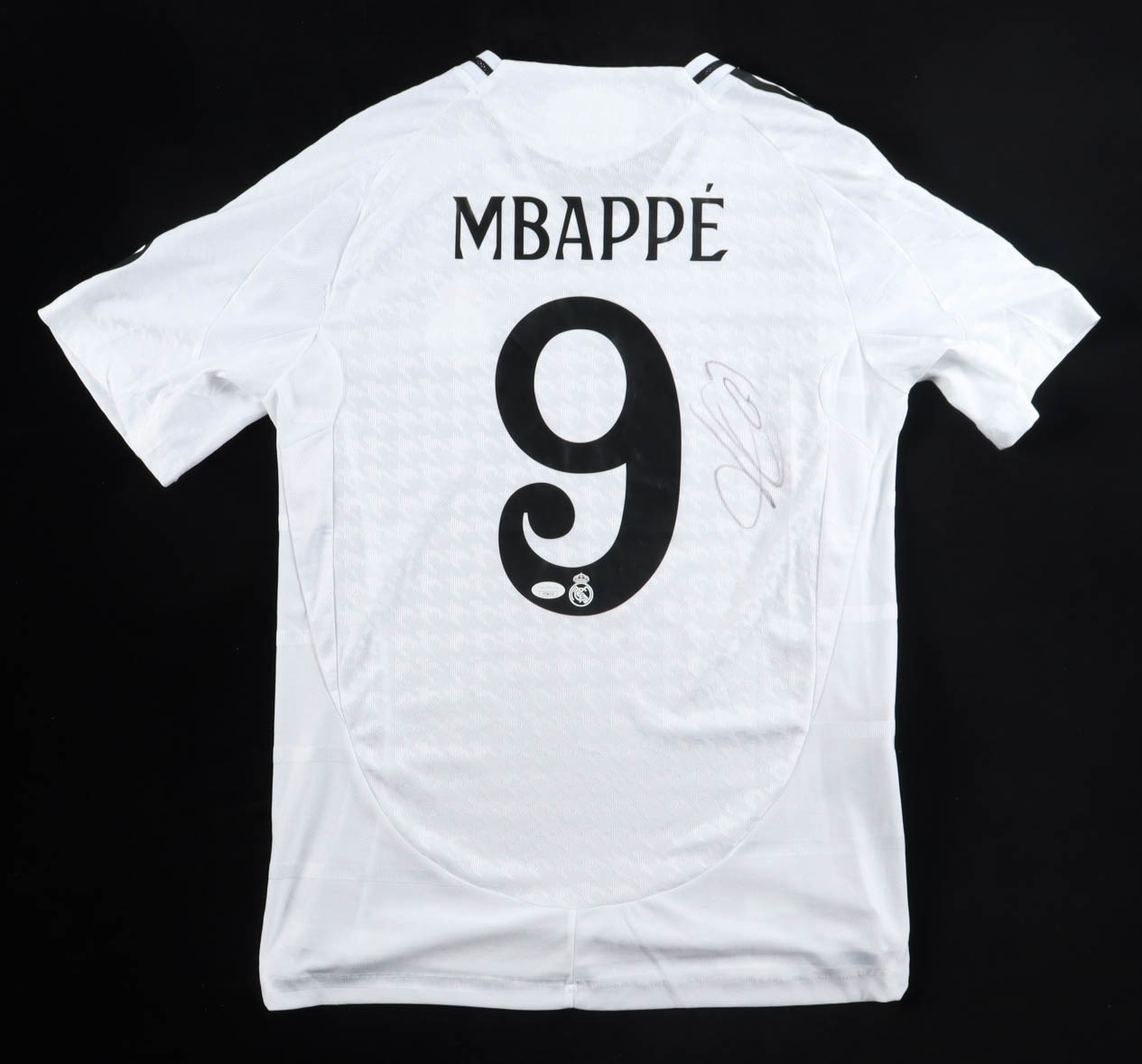 Adidas jersey with everything pressed on, size L. Hand-signed by Kylian Mbappe (Real Madrid CF).