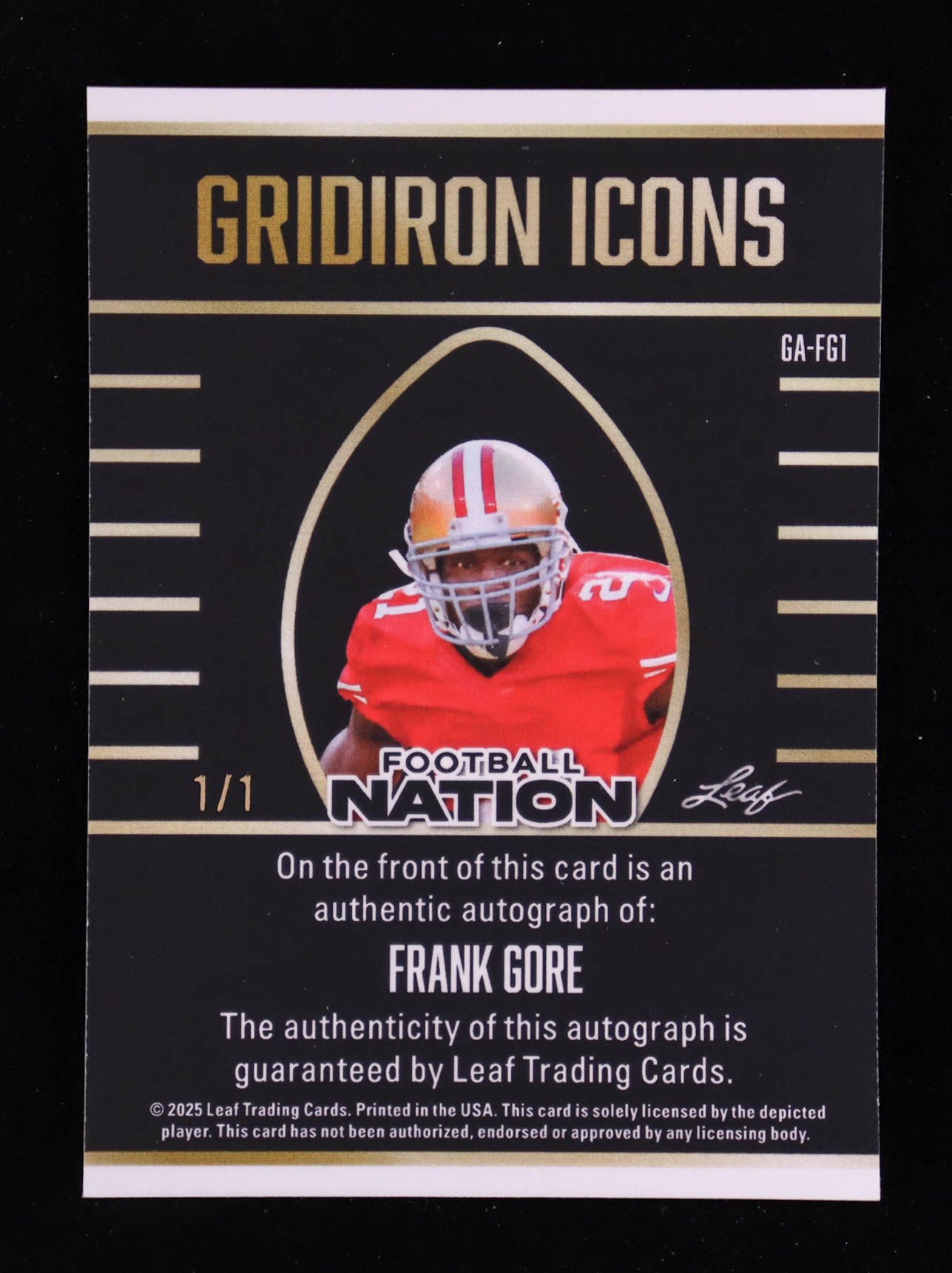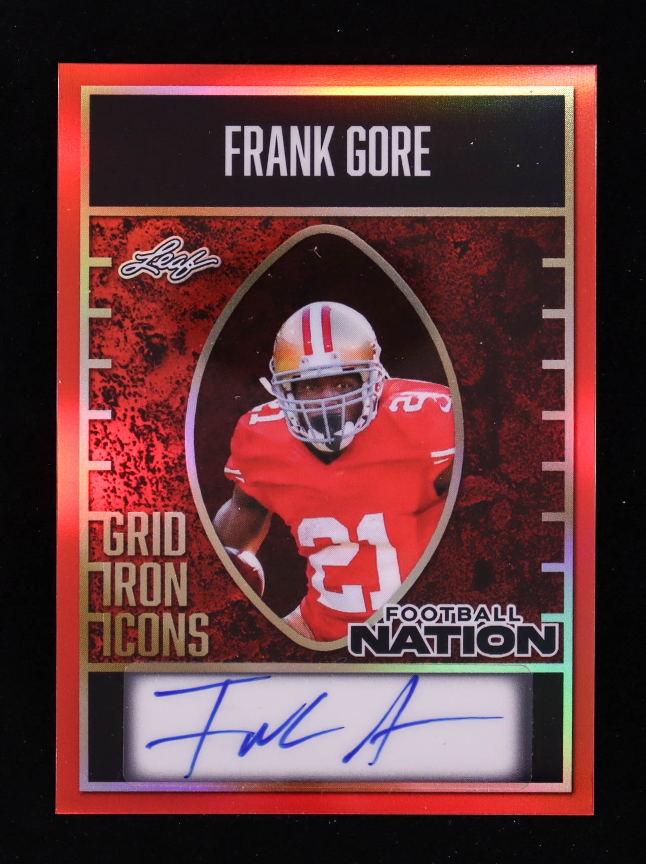 Frank Gore 2025 Leaf Football Nation Gridiron Icons Autographs Prismatic Red #GA-FG1 #1/1