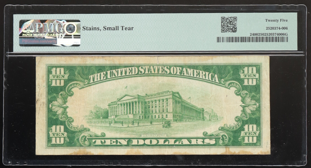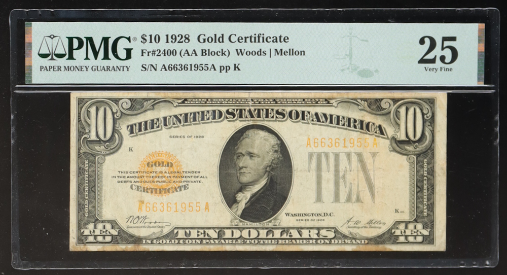 1928 $10 Dollar Gold Certificate AA Block (PMG 25 VF)