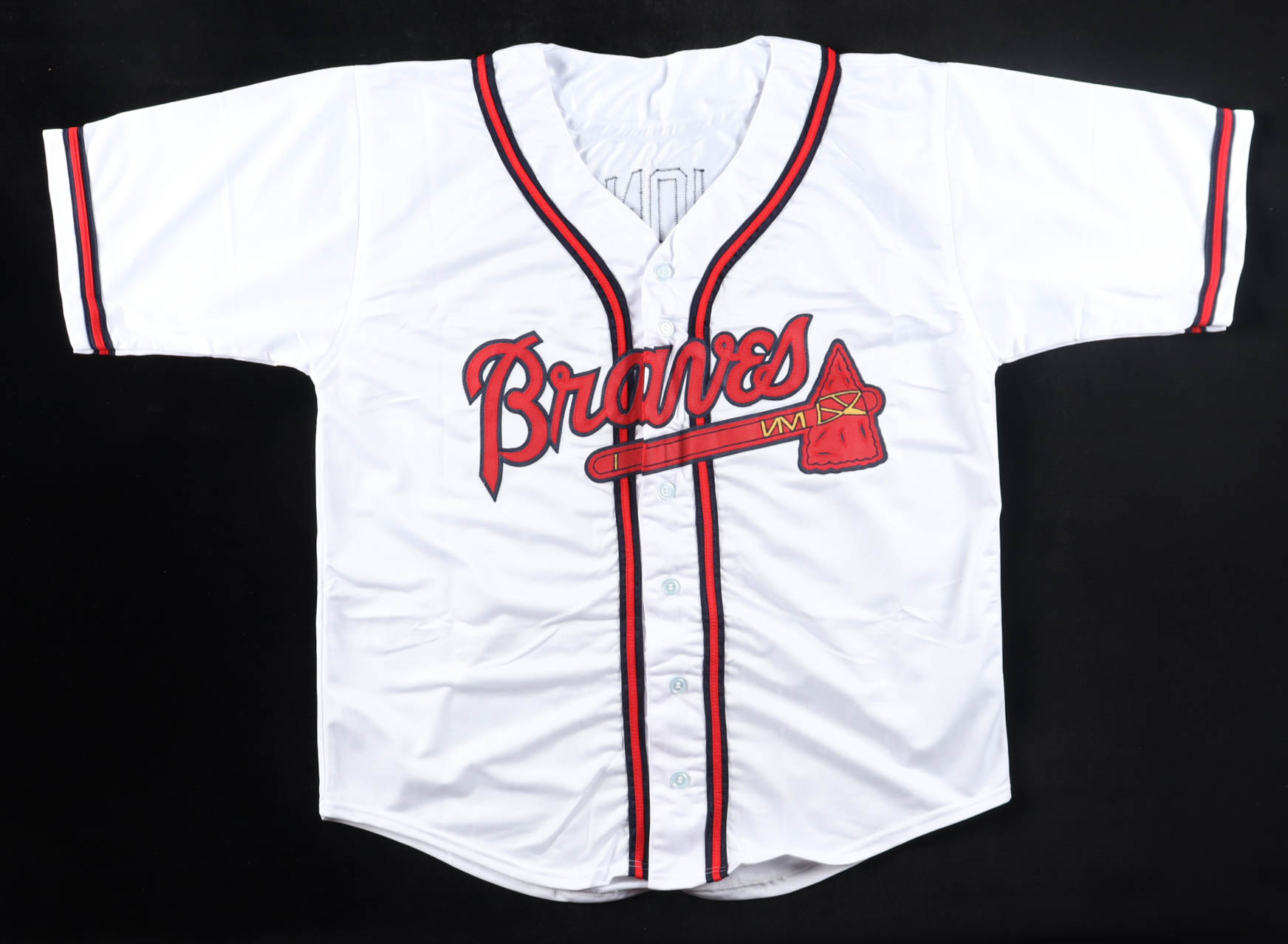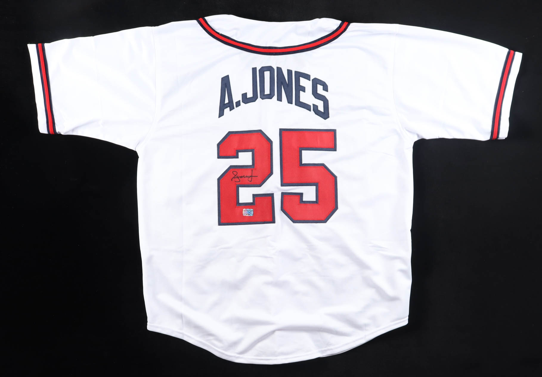Custom jersey with everything sewn on, size XL. Hand-signed by Andruw Jones.