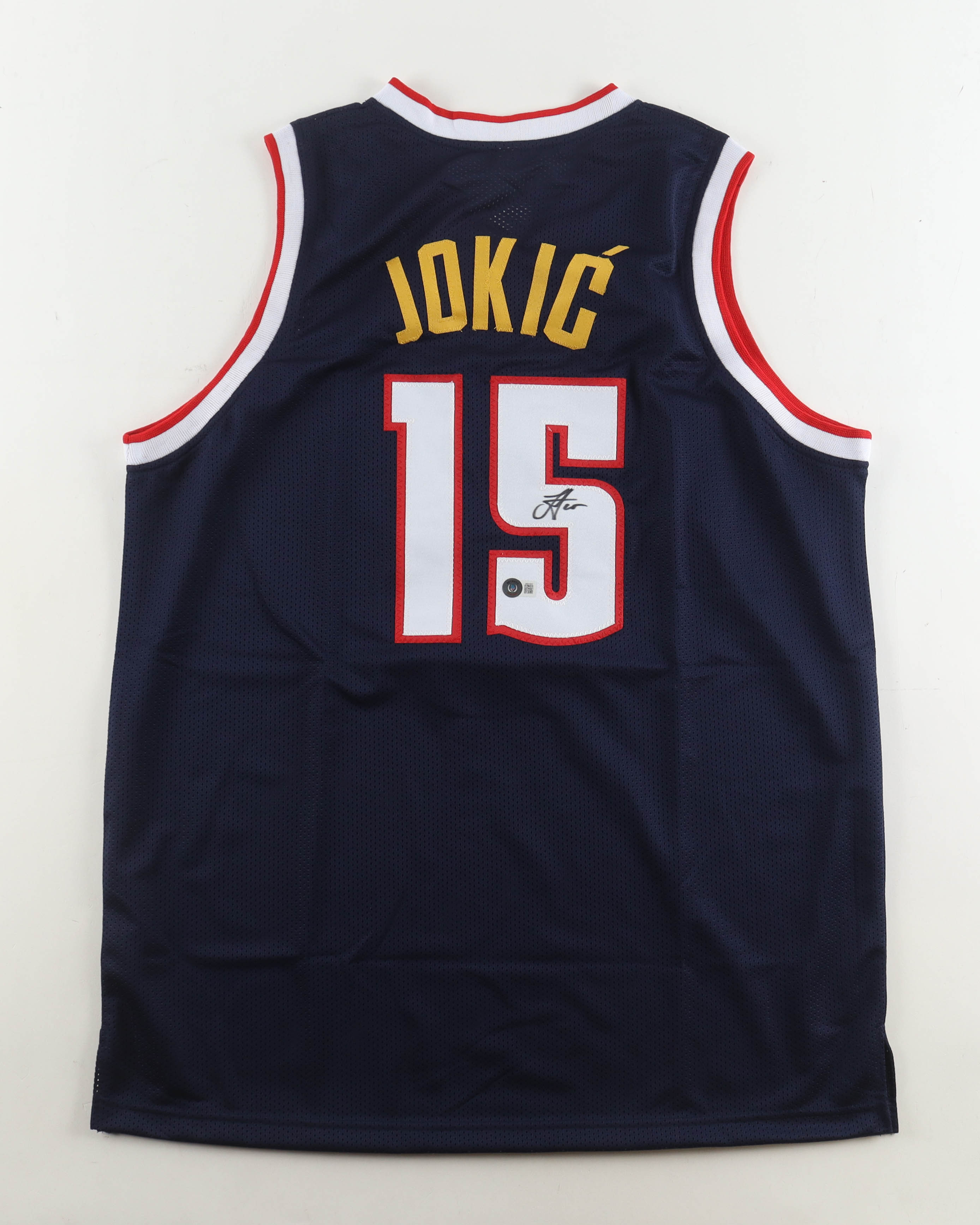 Custom jersey with everything sewn on, size XL. Hand-signed by Nikola Jokic.