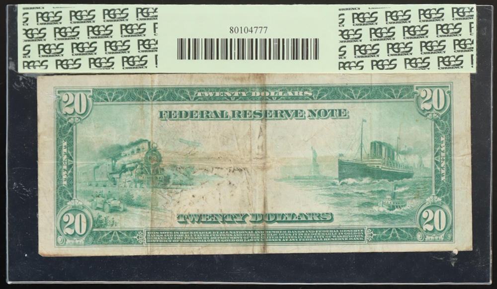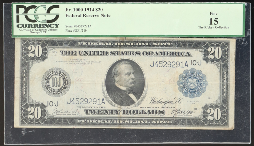 1914 $20 Twenty Dollars Blue Seal Federal Reserve Bank Note (PCGS Fine 15)