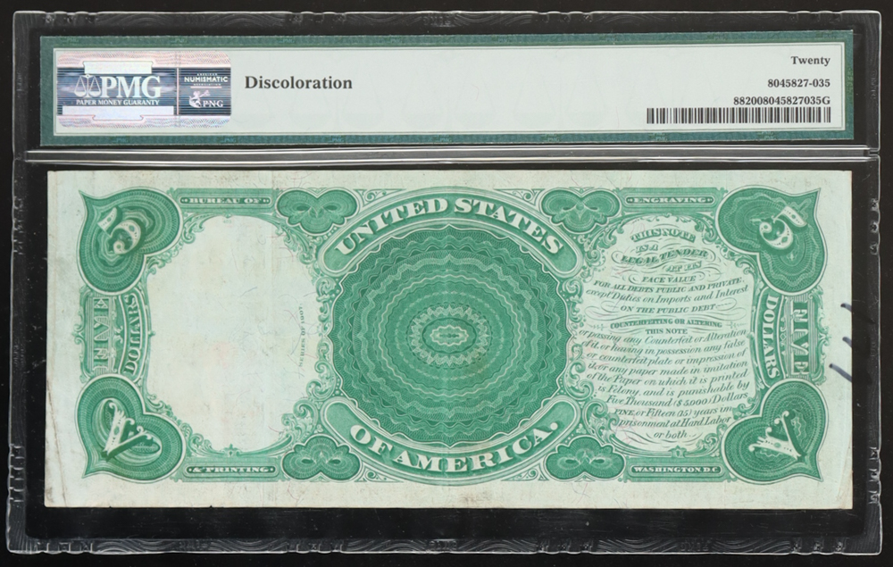 1907 United States Legal Tender $5 Five Note (PMG VF 20)